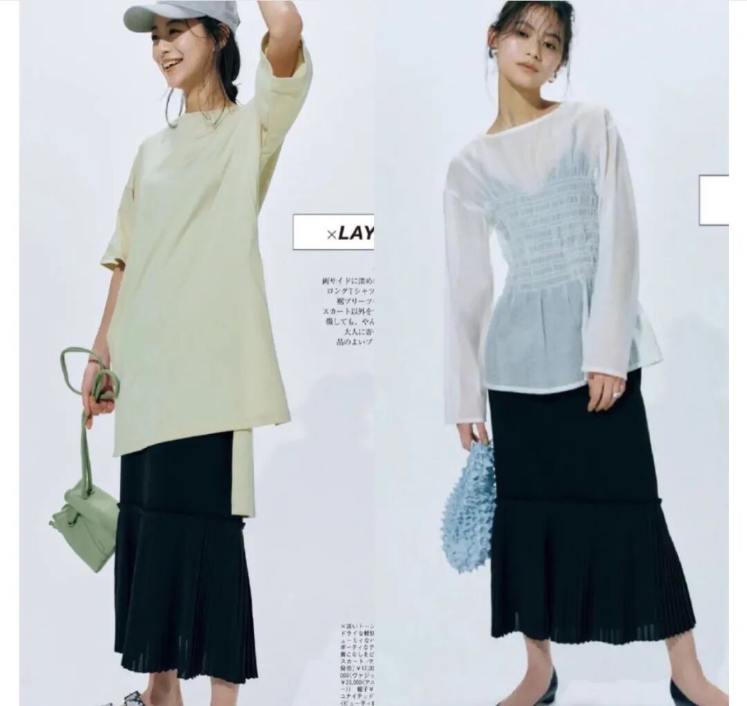 很多时候衣服的垂坠质感会在一定程度上优化身材比例,让你看起来更加纤瘦高挑!夏天的裙摆可以灵动,也可以端庄优雅,自带垂坠质感的百褶裙,很自然地拉长身材比例,和修身的T恤搭配,整体线条流畅自然,显瘦又显高!白色和大地色系搭配,辨识度超高,清新淡雅又不失时尚气质!西装+半身裙