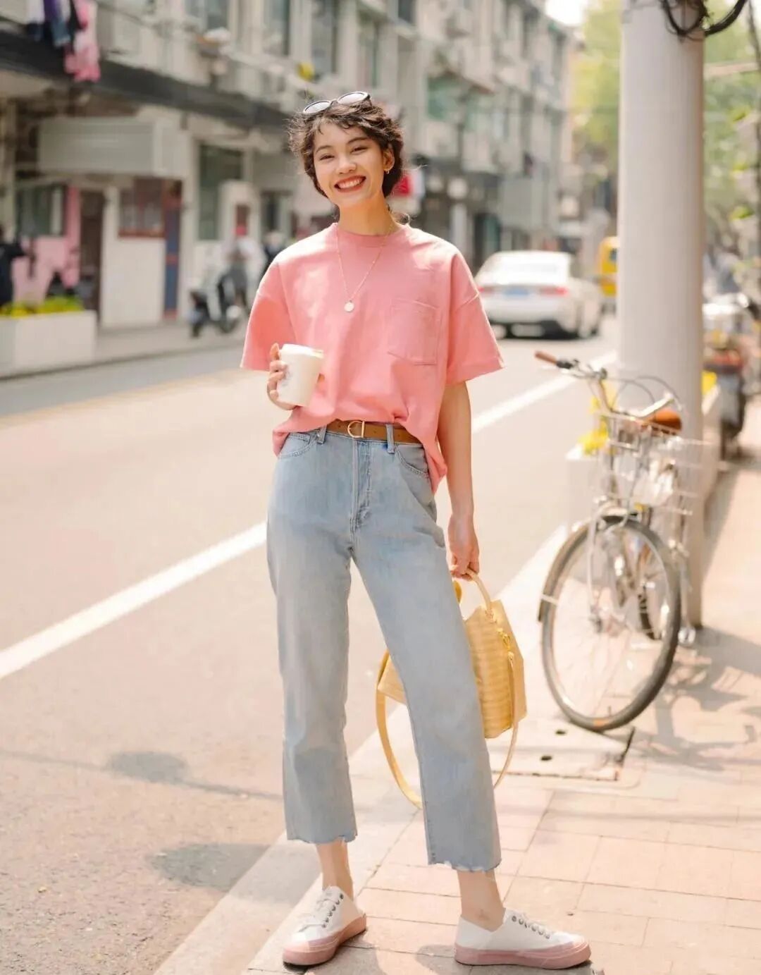 逐渐升温的天气,依旧有很多女生过着佛系养生的日子,走在街头,T恤+直筒裤简约不失大方的穿搭feel,羡煞旁人。原来不穿裙子也能这么美,完全不怕自己hold不住系列。
