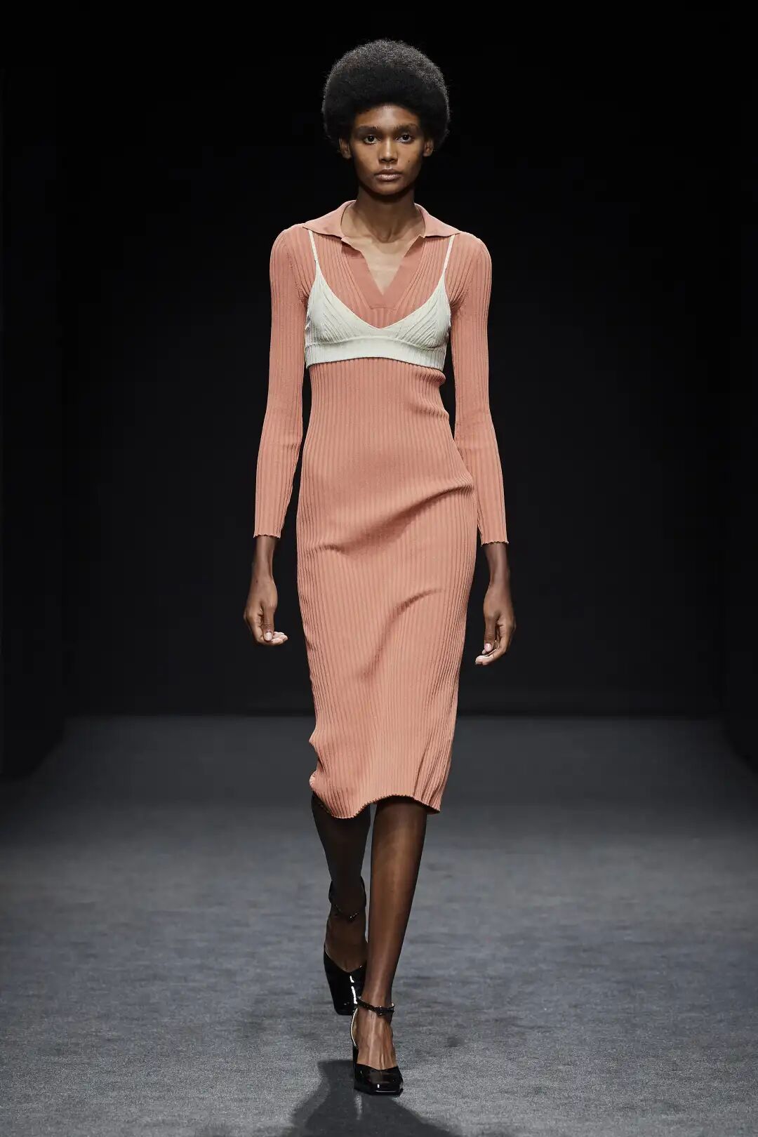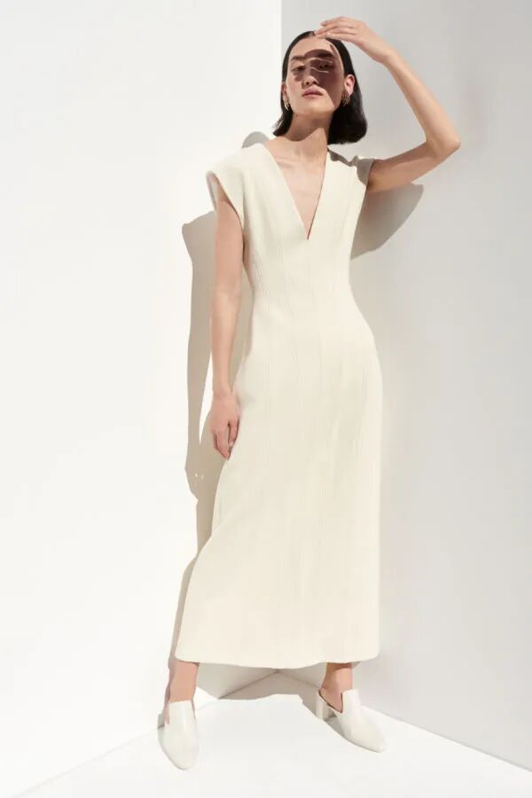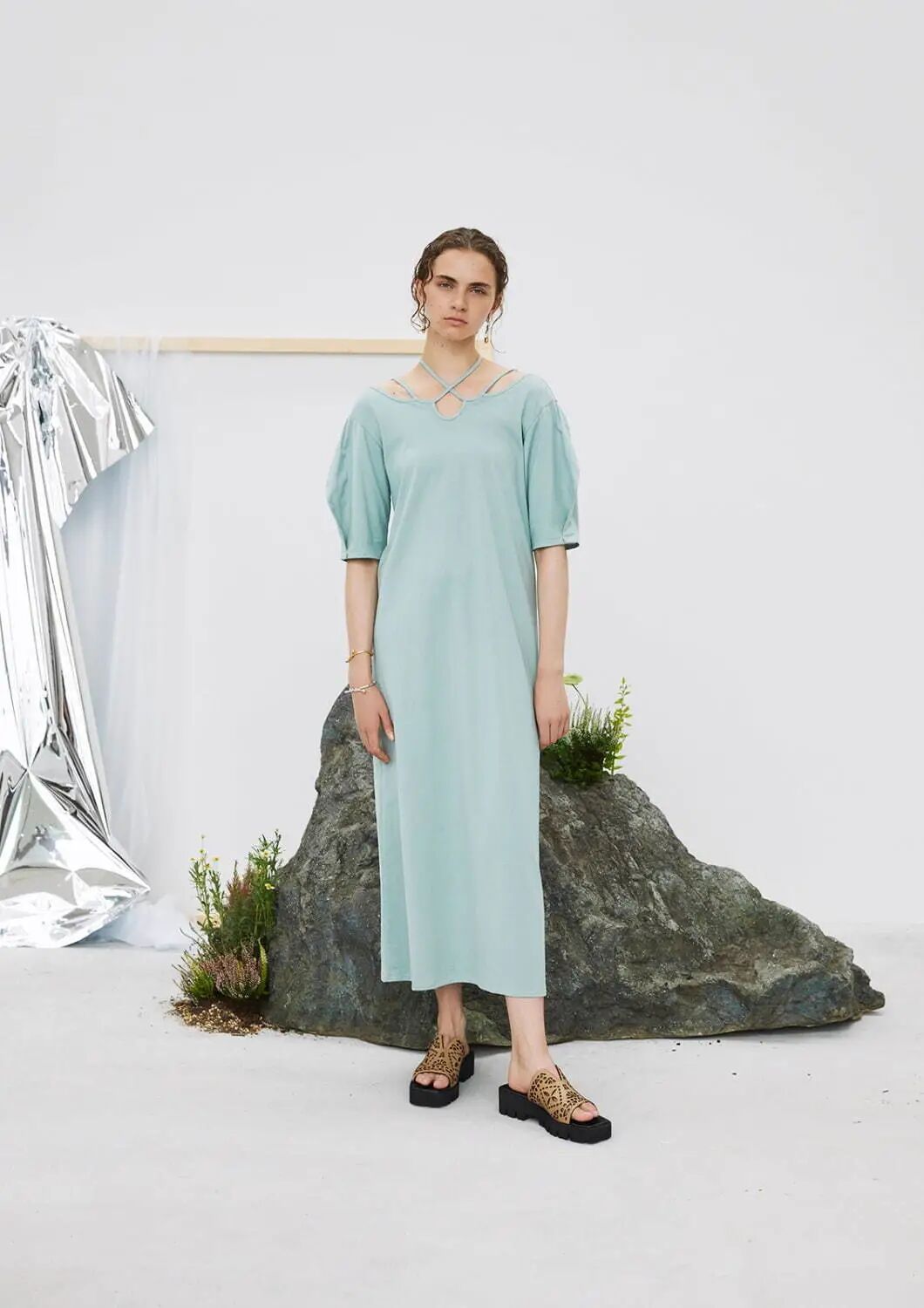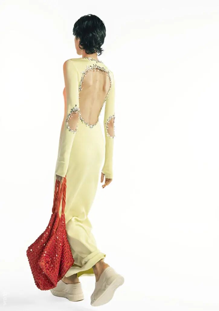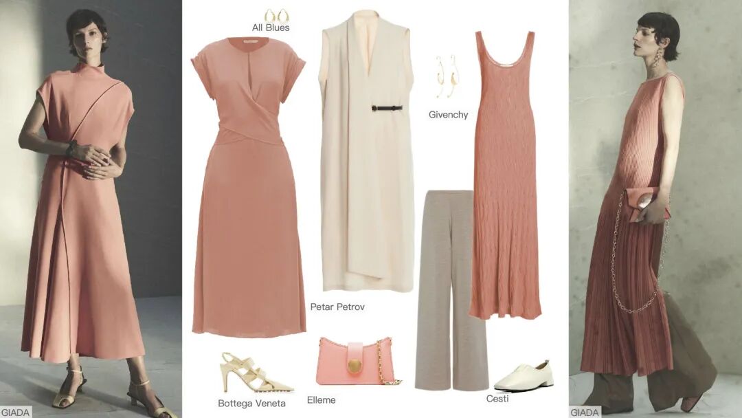 柔和的虾粉与清新的香草冰色搭配,弱对比的色彩呈现出舒适高级感的水彩色调,通过版型考究的修长款连衣裙造型出轻盈舒适感,与香草冰色穿插搭配打造个性化的中性造型。