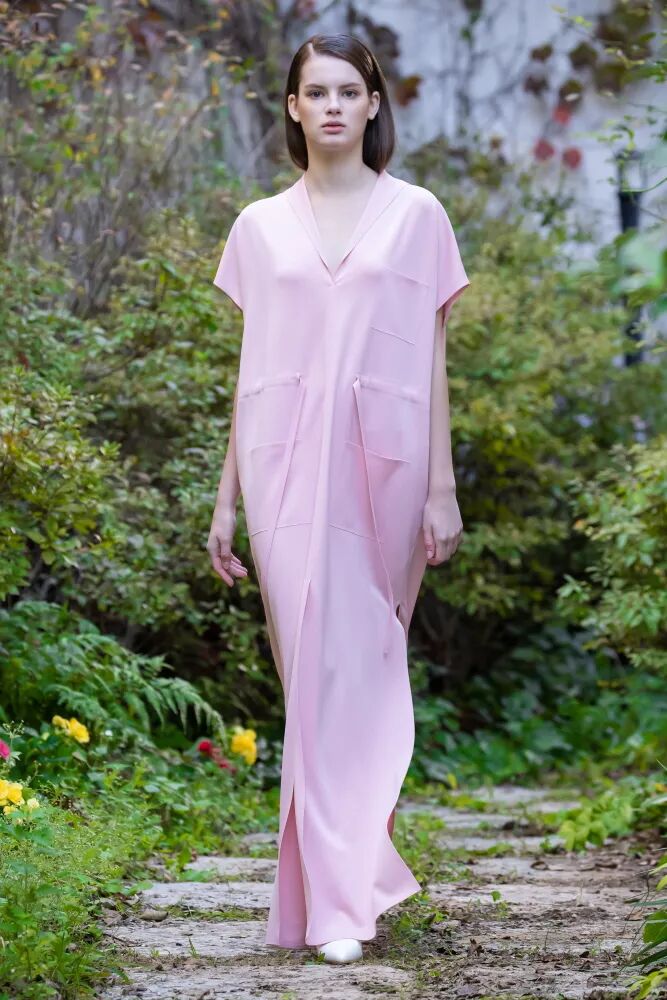 纯净雾感的水彩调色盘是一种偏暖的色组,整体呈现出未经修饰的自然视觉,随着春夏中许多柔美的女性化廓型出现,人们对于可持续性产品的注重,同时推动了天然色彩在春夏色盘中的位置,在秀场整体运用比例中数据持续增长。