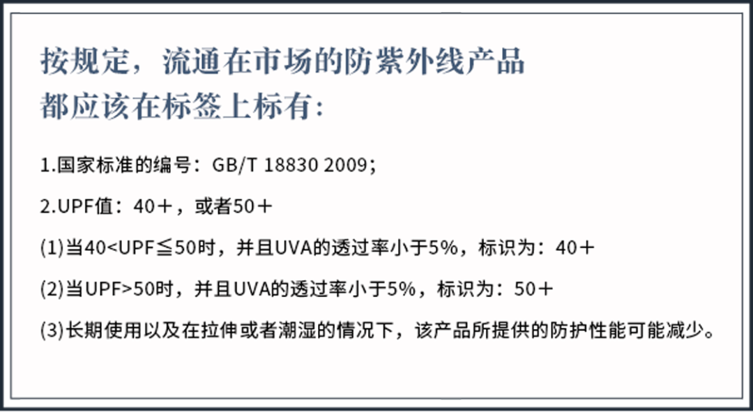 以占全球市场份额约30%的防晒剂全球龙头科思股份的数据为例:2018年,公司实现营业收入9.72亿元,同比增长36.69%,净利润8675.46万元,同比增长102.77%;2019年,公司实现营业收入11亿元,同比增长13.23%,净利润1.537亿元,同比增长77.16%;2020年受疫情下消费者足不出户的影响,营收10.08亿元,净利润1.63亿元。另据行业数据统计,2016年中国防晒用品市场规模为55.35亿元;2017年这个数据增长到60亿;2018年增长至70-100亿;2019年中国大陆防晒市场的规模达220亿;2020年仅淘宝天猫防晒市场全年成交额即达77.03亿元……在这系列数据中,有防晒功能的化妆品占据了大头。自2007年防晒服在美国流行,在进入中国市场后最初多应用于户外工能性服装,如运动品牌如The North Face、迪卡侬、哥伦比亚、探路者的户外服装中有防晒防雨功能,或者综合类快时尚如优衣库的防晒系列,而近几年随着新晋品牌如ohsunny、VVC、蕉下这些专注防晒的时尚品牌出现,防晒衣细分市场开始走向专业化、垂直化。尽管如此,防晒衣市场仍然处于早期发展阶段,用户认知尚未完全普及,市场仍有质疑防晒衣是“智商税”的声音。而在这种情况下,专业度较高的品牌起到了市场启蒙和教化的作用,同时也为滥竽充数者提供了蒙混机会。其实,衡量一种产品是否属于“防紫外线产品”,国内外都有明确的指标。目前,国内外的标准对纺织品的防紫外线性能一般都使用UPF值,即紫外线防护系数值进行评定。UPF值是紫外线对未防护的皮肤的平均辐射量的比值,UPF值越大,表明防紫外线性能越好。据中国国家质检总局颁布的《纺织品防紫外线性能的评定》标准中规定:而欧盟标准则主要针对服装面料紫外线防护性能的测试,要求UPF>40(UVA透射率<5%);美国和澳洲标准确定为UPF≥15。在面料材质和防晒指数方面,防晒衣采用优质的聚酯纤维材料,各种纤维的防晒系数不同,依次顺序是:聚酯纤维>棉纶>人造棉和丝。目前市场上大多数防晒衣是在布料中加入防晒助剂,在衣服里层加防晒涂层(类似于遮阳伞)。一般一件防晒衣可以隔离95%的紫外线光,但此类防晒衣经浸水或洗涤后悔防晒效果递减。而在利用防晒陶瓷纤维和聚酯纤维结合的高端防晒衣,受浸水和洗涤影响较小,防晒功能相对持久。