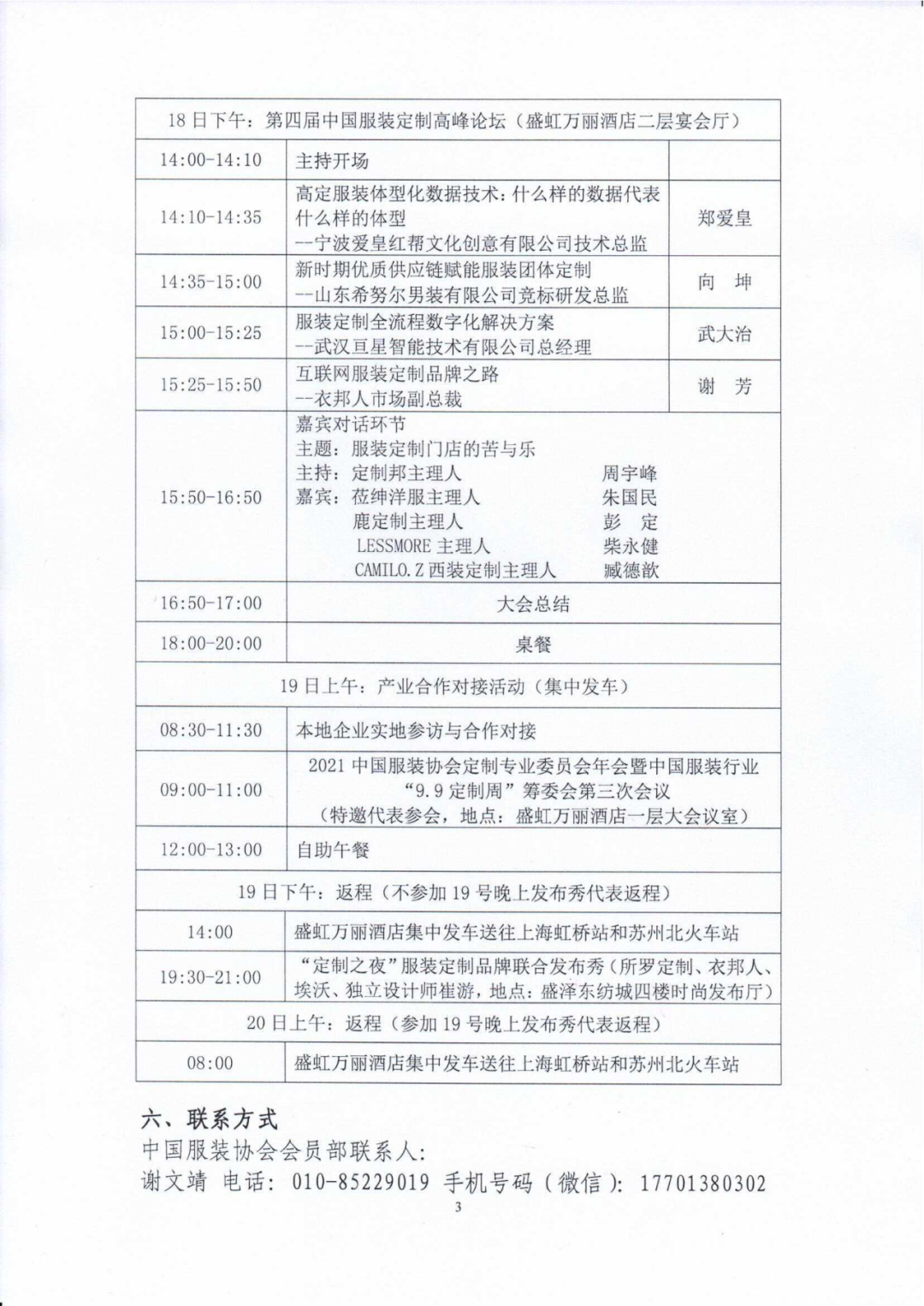 (四)中国服装行业“9.9定制周”筹委会第三次会议;五、日程安排