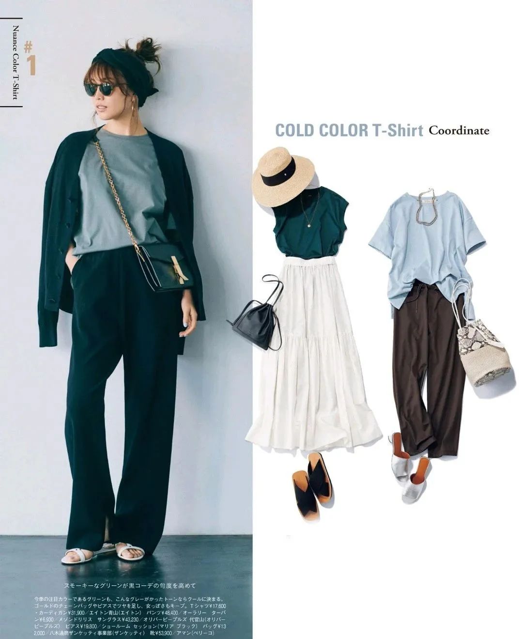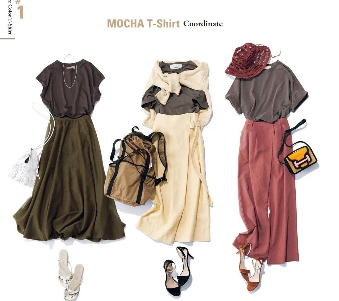 轻松入夏,我们都离不开T恤。白T恤太多人穿,不如试试小众一点的大地色系。比如,浅棕色的短袖棉T就非常值得拥有。浅棕色T恤很显白,我们可以用它来搭配同色系的A字形半身裙,加上白色包包和凉鞋来提亮即可。或者将裙子换成鹅黄、玫红色高腰阔腿裤,都是很容易带出高级感的组合,可以让你的夏日造型显得既简单又独特。▼