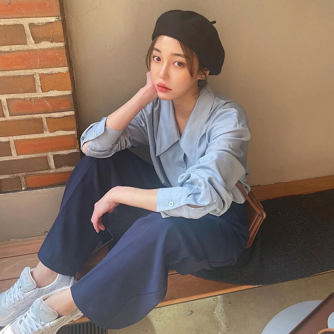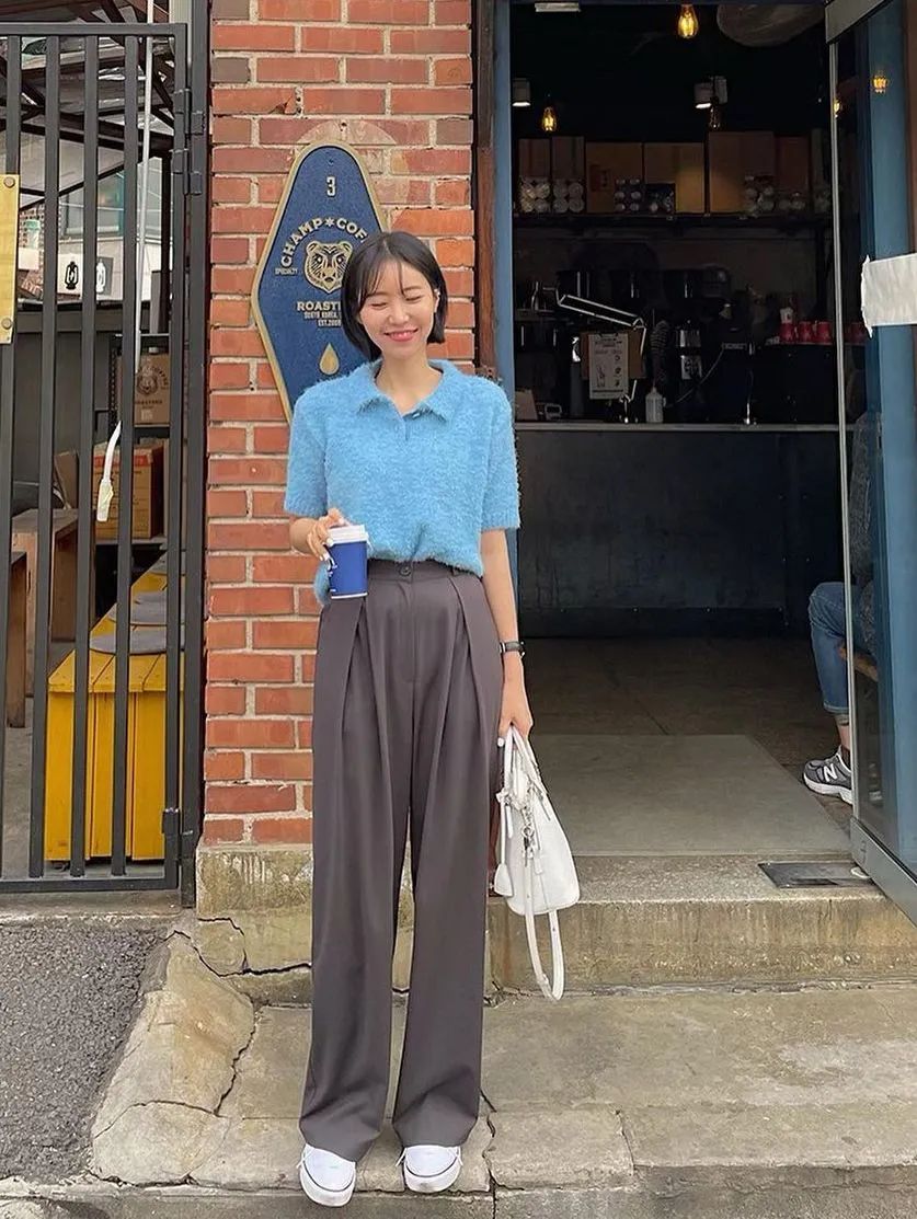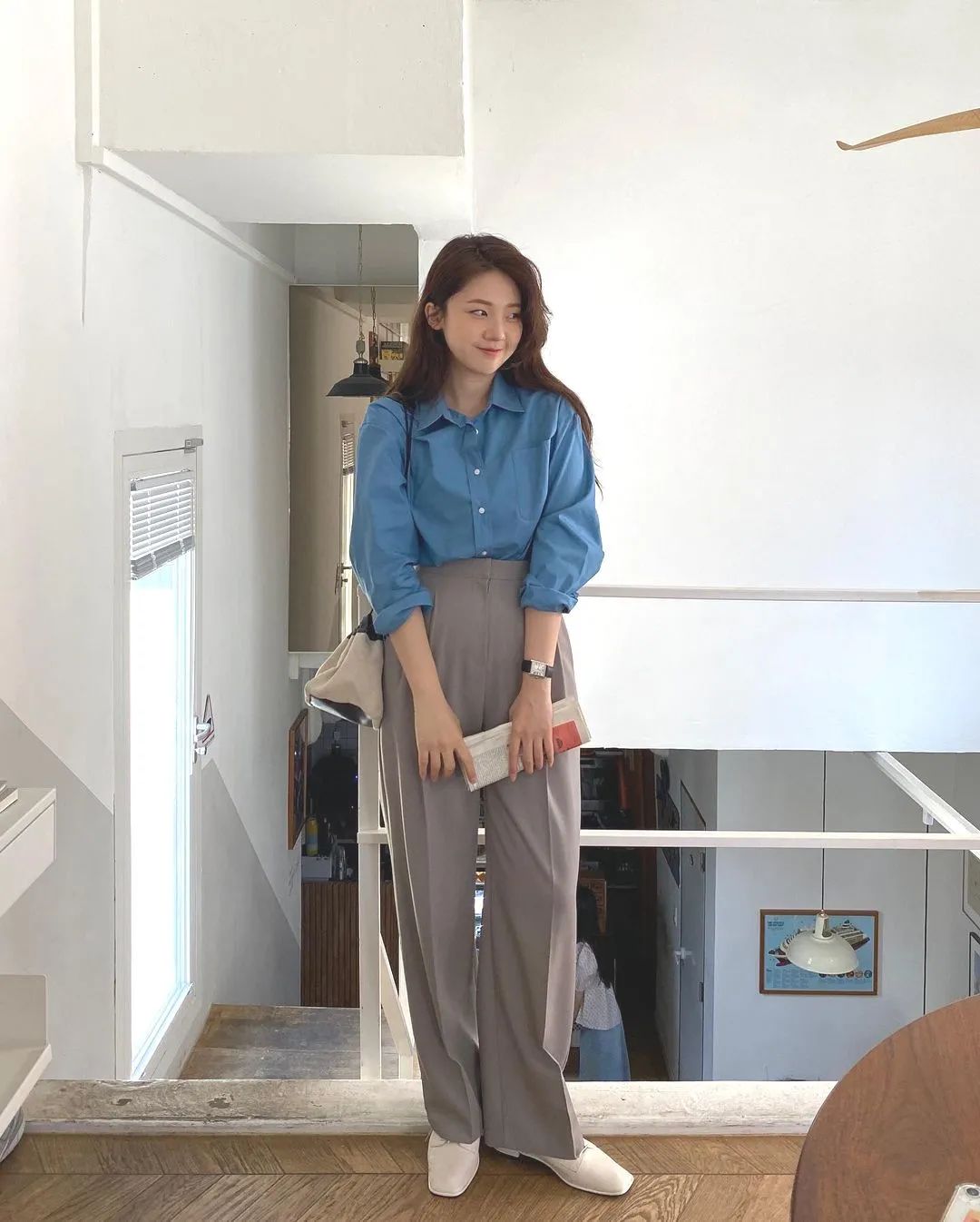 而且因为它是具有收敛效果的深色,应用在下装上也是比较显瘦的,还可以和前面我们安利的蓝色搭配在一起,给人大海一般舒爽的感觉~
