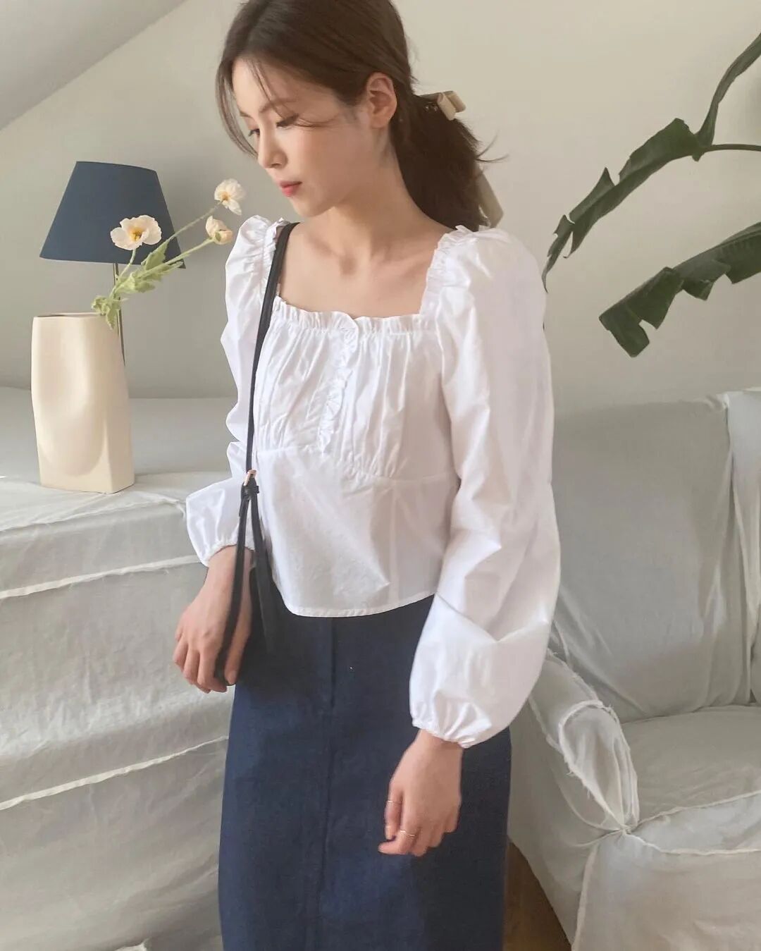 搭配方领、泡泡袖这些元素也完全不突兀,这一套直接copy去通勤上学都完全不是问题~