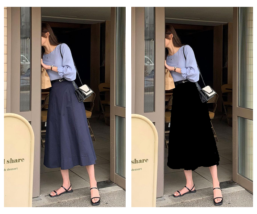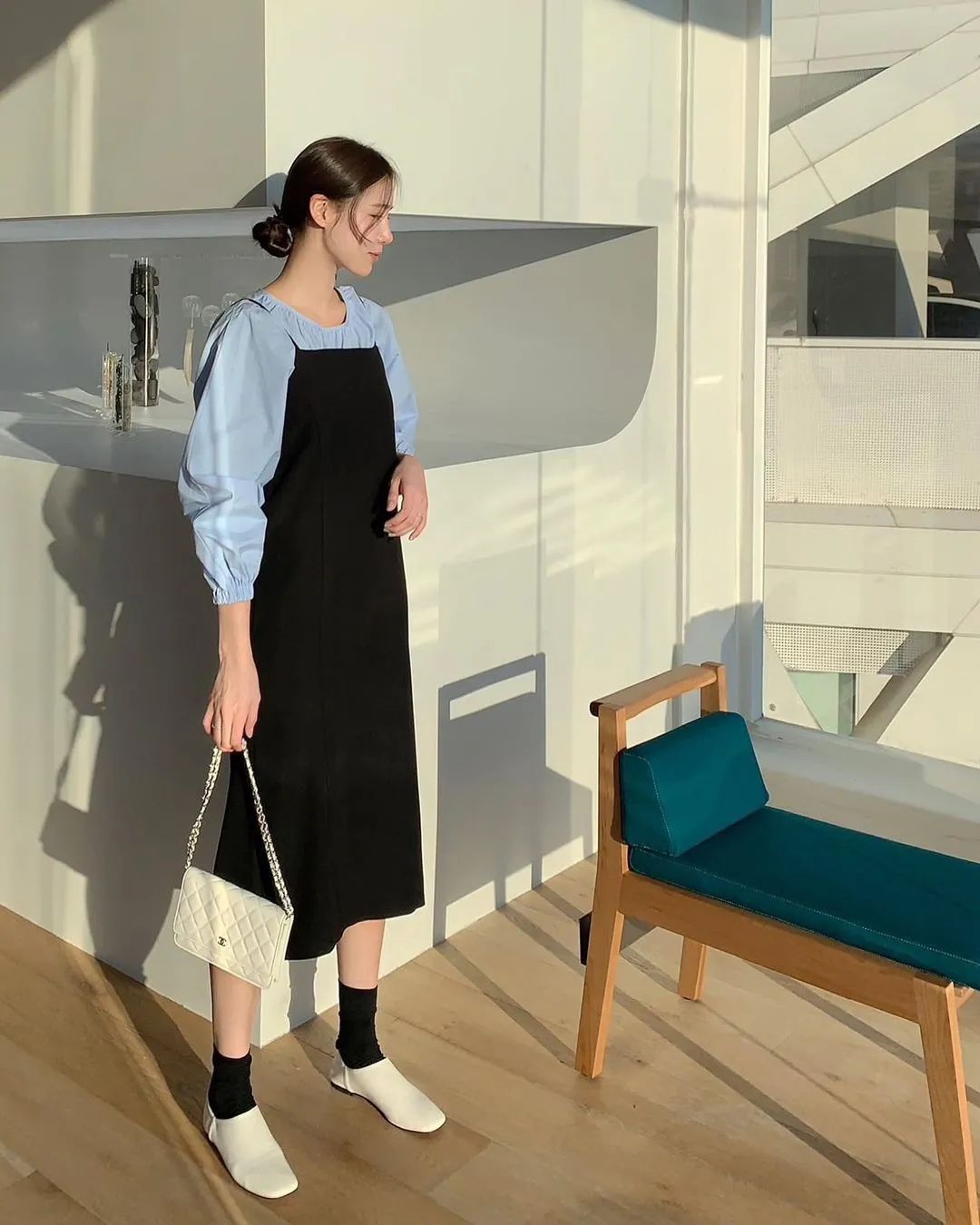 如果你怕穿纯黑色看起来太死板的话,换成深蓝色其实就会亲近很多~