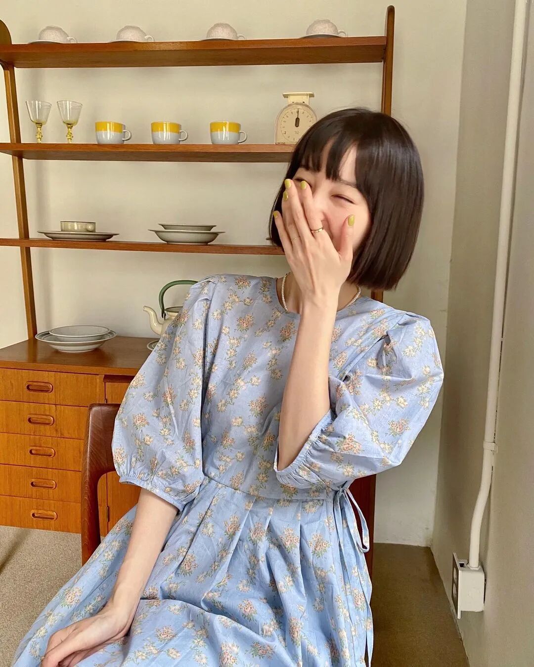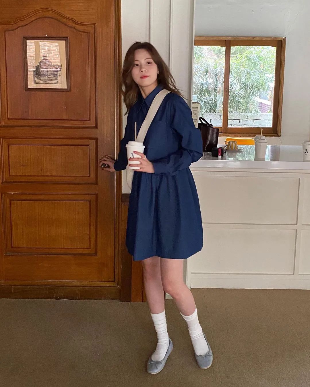 靛蓝色的娃娃裙也别有一番风味。这种款式的连衣裙如果搭配的是很粉嫩的颜色,非可爱型女生驾驭起来就比较有难度了,但因为它做成了靛蓝色,也就没有那么嫩的感觉了~