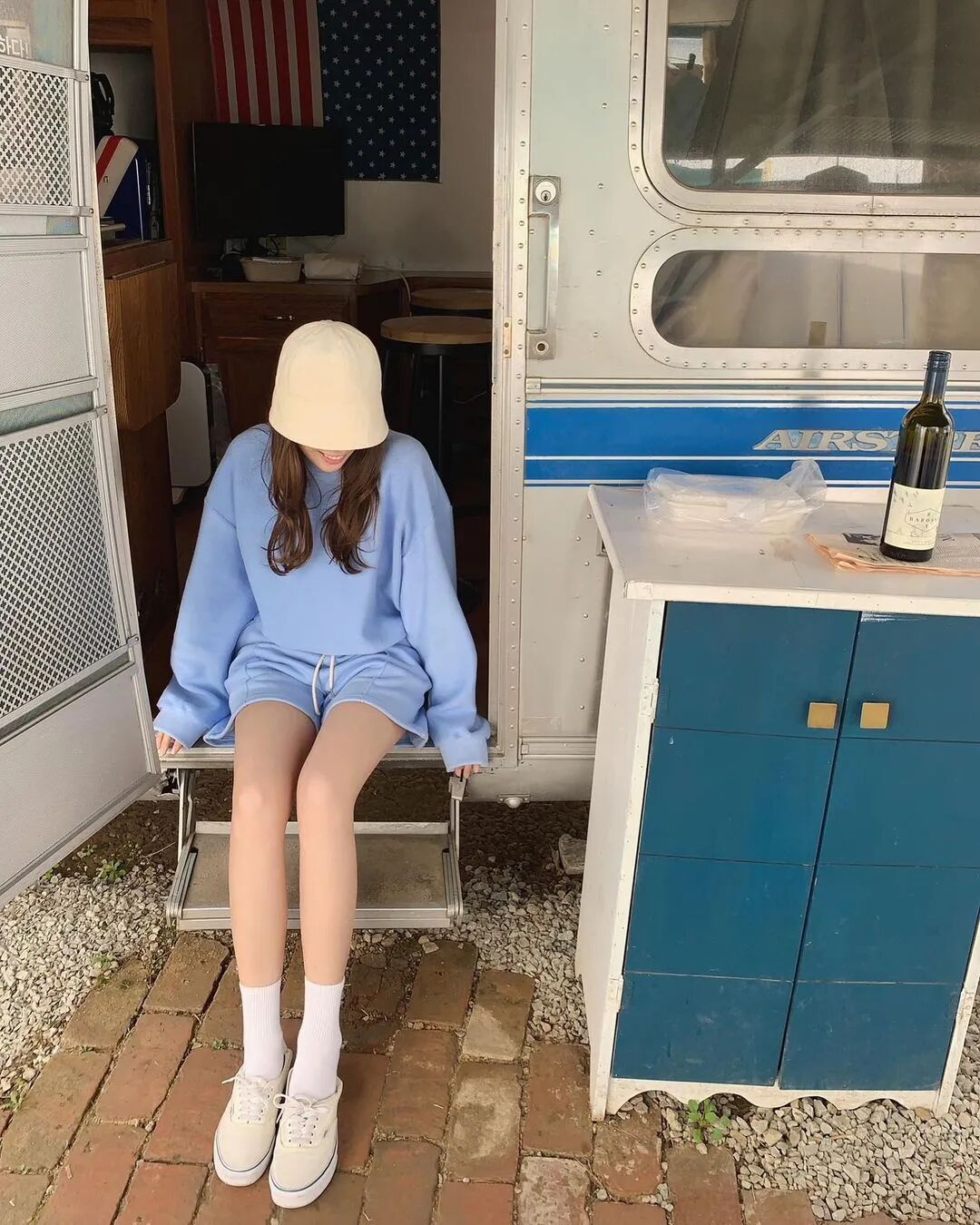 这一整套婴儿蓝的运动服,真的也太好看了吧!