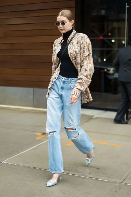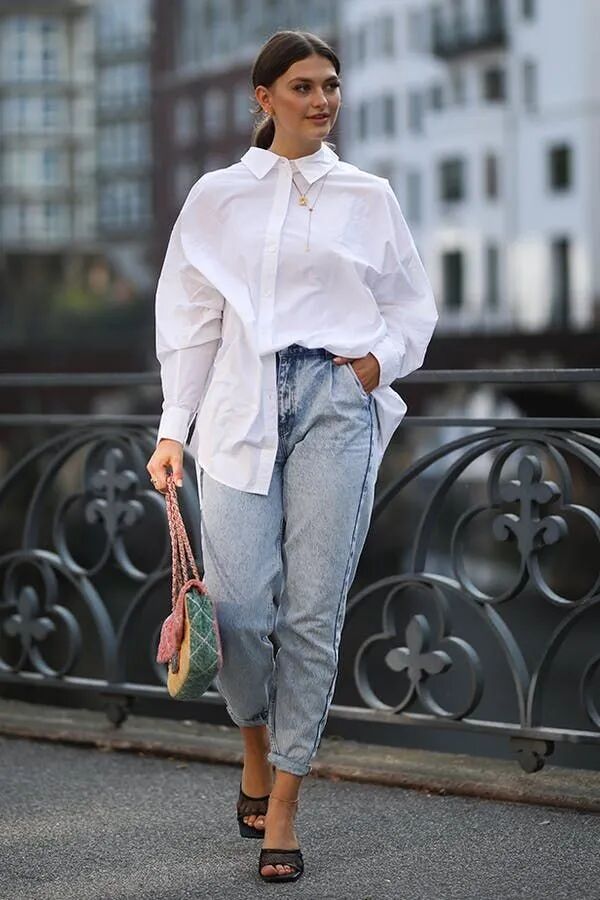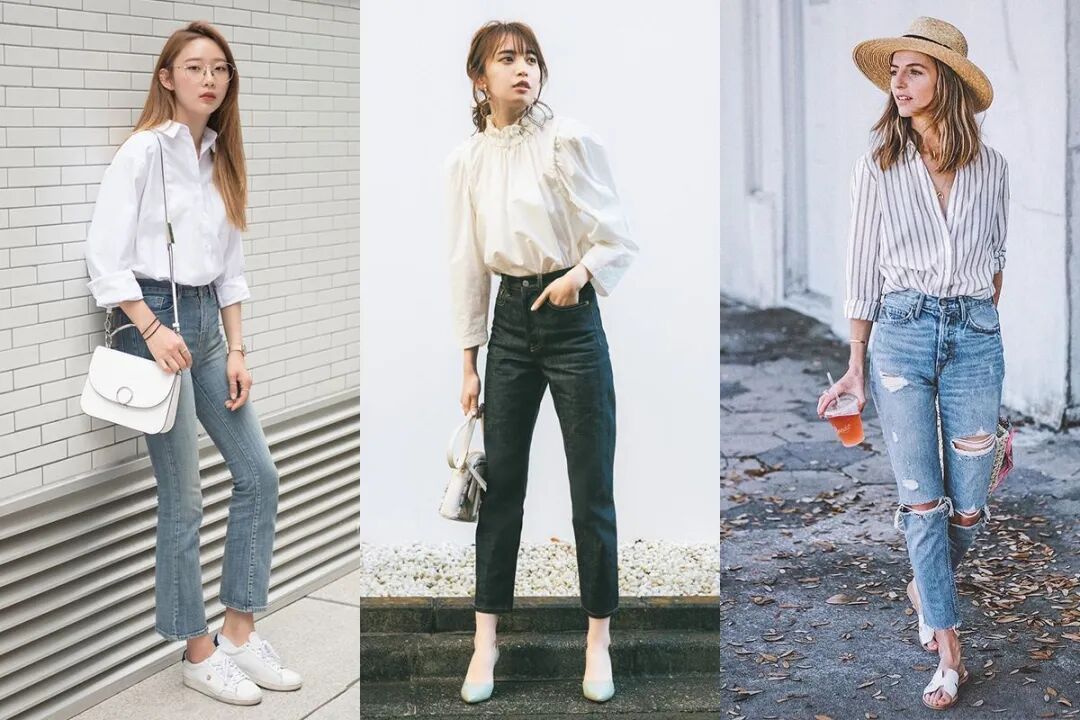 1. 白衬衫与各种牛仔裤版型碰撞出不同的效果