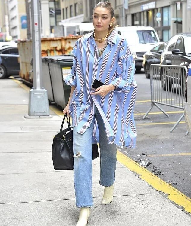 Oversize版型虽然同样宽松,但塑造出的却是硬朗的刚气。宽大衬衫配合牛仔裤简单大方,气场爆棚。