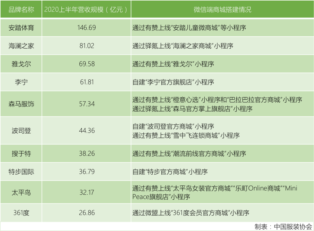 (营收TOP10上市服装企业微信端商城搭建情况,60%与有赞合作搭建小程序)
