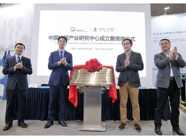 图:2019年3月13日,中国校服产业研究中心在中国国际服装服饰博览会(CHIC)上正式揭牌成立