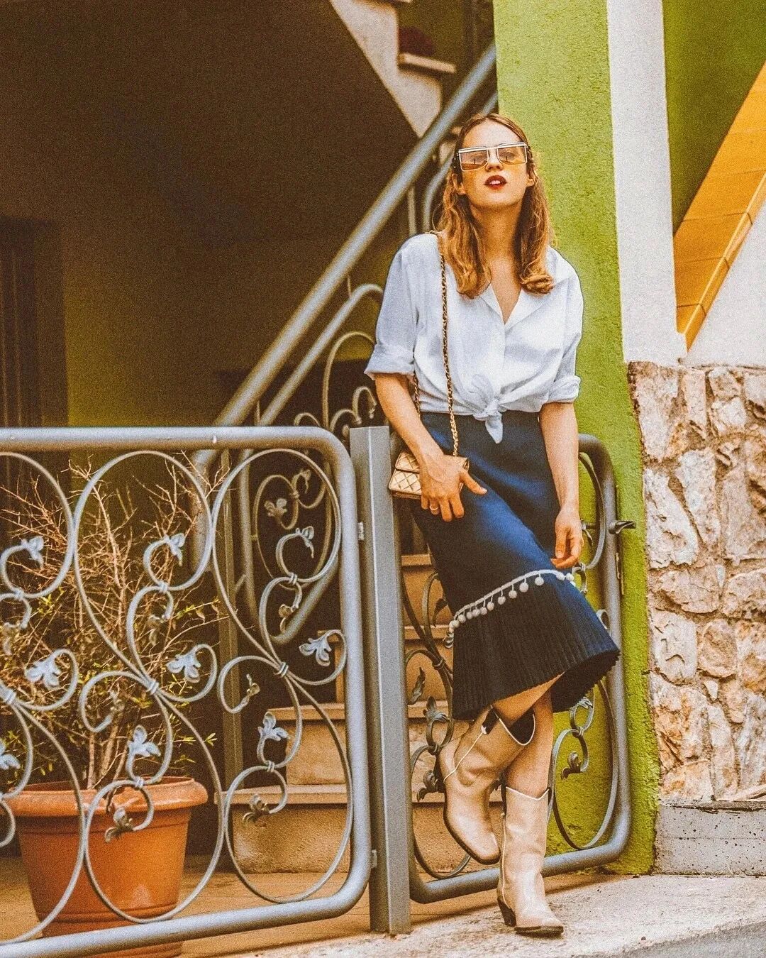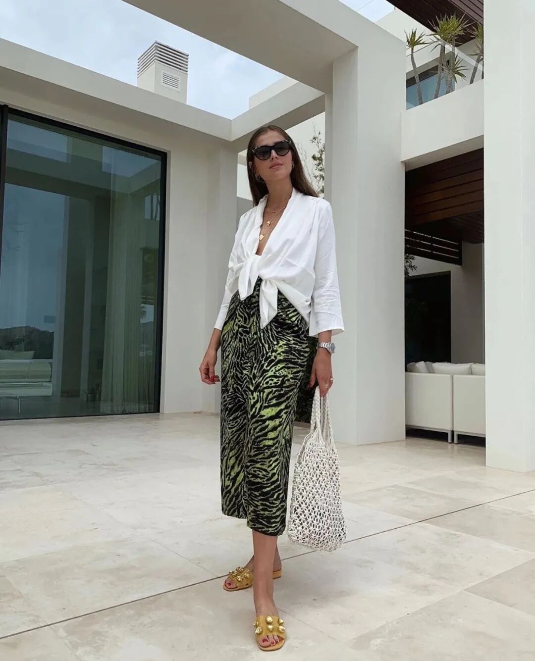 雪纺衬衫还有缎面半身长裙绝对可以将我们的穿搭质感提升不止一个档次,看起来也会很高级。现在很流行脖子带有装饰的雪纺衬衫,而且脖子上面的小装饰很好看,不管是系不系带,都很有感觉。缎面半身裙我们可以选择开叉款的,会更加女人味,春夏的时候,我们可以选择颜色比较温暖温柔的缎面裙,搭配上小高跟鞋,妥妥的春日女神。