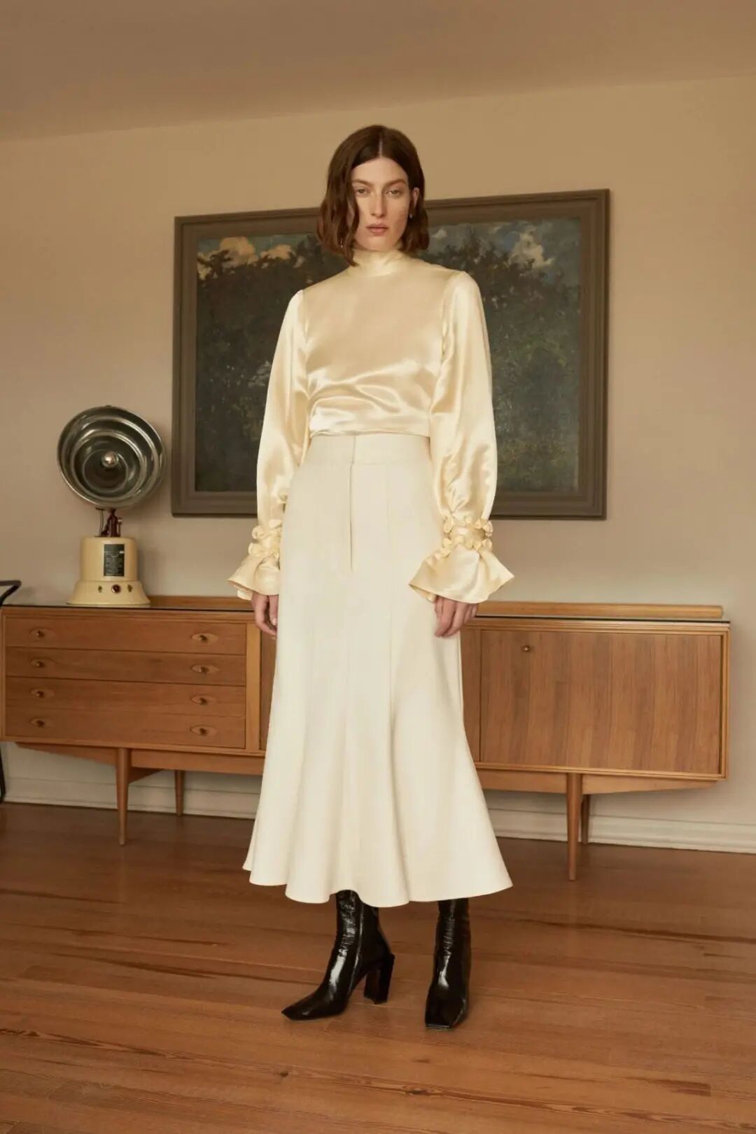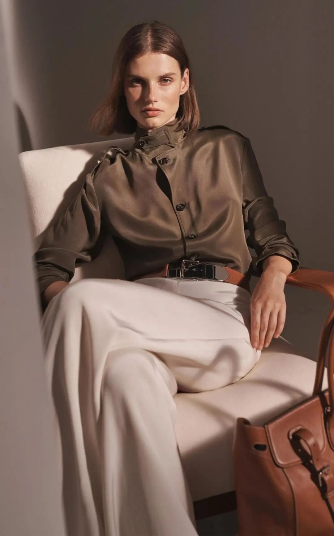 想要走成熟大女人风,就要来看看立领衬衫。但是,我们在挑选的时候要聪明一点,记得要避开修身的立领衬衫,因为如果搭配不好,就可能会被别人误以为你是在餐厅的服务生,所以,我们要选择比较宽松的,再加上真丝材质,会更加优雅。
