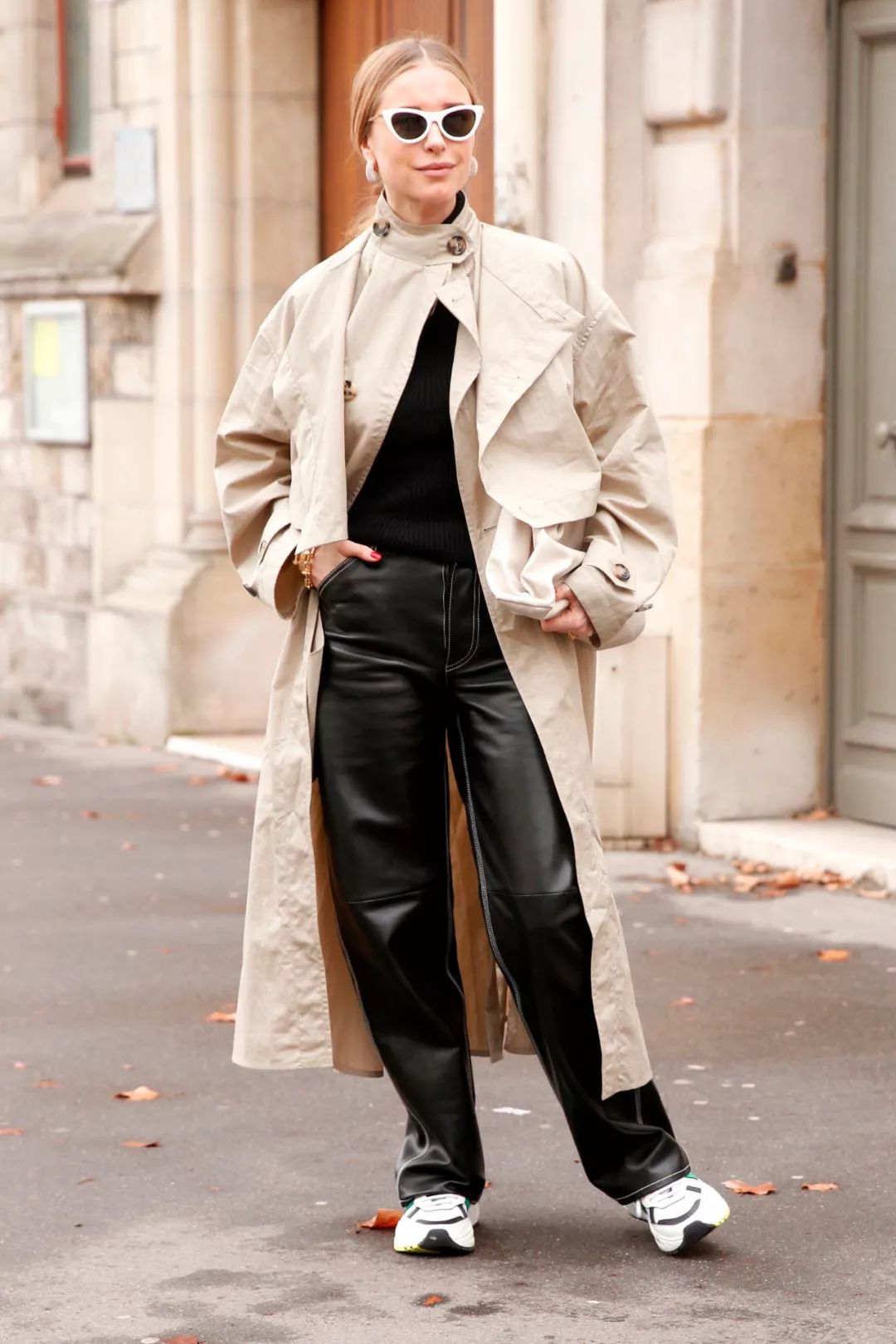 大家都知道高腰裤可以显腰细显腿长,皮裤也不例外。另外,皮裤比起其他材质的裤子,还能更显整体质感。所以超高腰皮裤一定是编辑推荐的首选。最常见的皮裤颜色就是黑色。显人瘦也很好搭配。黑色的超高腰皮裤可以搭配近期很流行的西装外套穿,再配上高跟鞋,很有气质。不喜欢穿高跟鞋,搭配一双运动鞋也很有味道,很有运动气息。