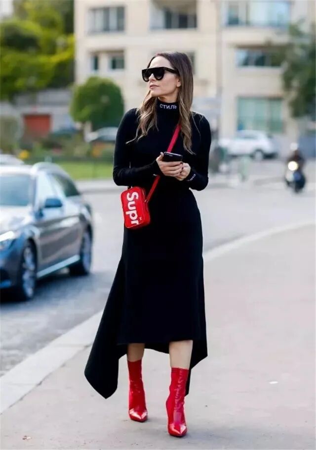 具有复古气质的方头靴大多以粗低跟为主,皮质的靴子穿起来既具有个性和时尚感。选择穿双方头靴,彩色系的颜色更有高级感,在搭配裙子时,裙子的颜色尽量以素色为主,这样搭配起来能让时髦感翻倍。