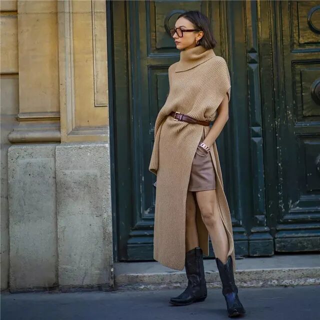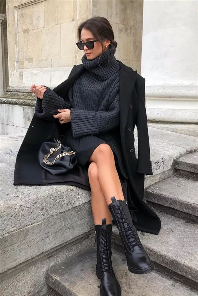 对于腿型不太好看的女士,或者是想要让穿搭看起来更有女性气质,更时髦的女士也可以选择叠穿的搭配方式,在长毛衣里面叠穿件长裙和裤子,这样能让穿搭看起来更好看。叠穿裙子和裤子后的长毛衣会让整个穿搭看起来长了不少,因此脚上的鞋子要准备好了,不建议穿平底的靴子,当然如果个子高的话也没关系。穿双带有鞋跟的短靴搭配起来不搭能让个子看起来高了很多,而且连气质都会变好很多。