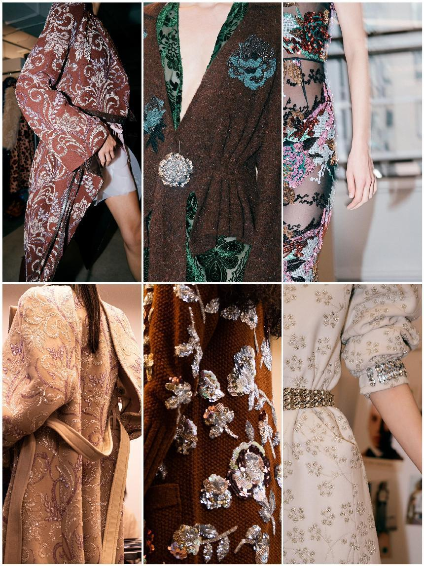 面料的创意也值得细数,意大利西装呢料结合芍药绣花与钻饰,质感毛衣上点缀脉脉温情的芍药珠花,改良旗袍礼服上华丽的芍药重工刺绣……一如大秀主题“繁花”一样,“花”是本季主旋律。多达两百多种的芍药,给予王陶丰富的灵感:多瓣重瓣的芍药花型,也让原创图样的生命力愈发旺盛,布满各种工艺、各种技法的原创花卉图案新颖面料扑面而来。绣花、印花、提花、串珠、绗缝、车缝、压花等手法在面料上的创意再造,与绮丽的中式搭色相结合,勾勒出国色天香的丹青画卷,让人一眼梦回《春江花月夜》中“江流宛转,月照花林”的唯美场景。