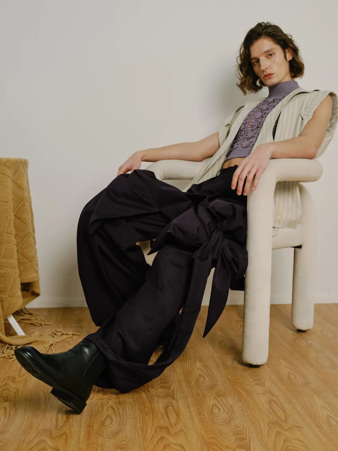 其实我们的设计经验不是很多,所以在设计中我们需要不断去探索。在成衣出来的时候,其实我们有很多不够实穿、实用性不够强的地方,我们就不断跟工艺师傅还有打版师傅去调整,不断去磨合最终的设计视觉效果,在不断的修正中达到一个我们最满意的效果。