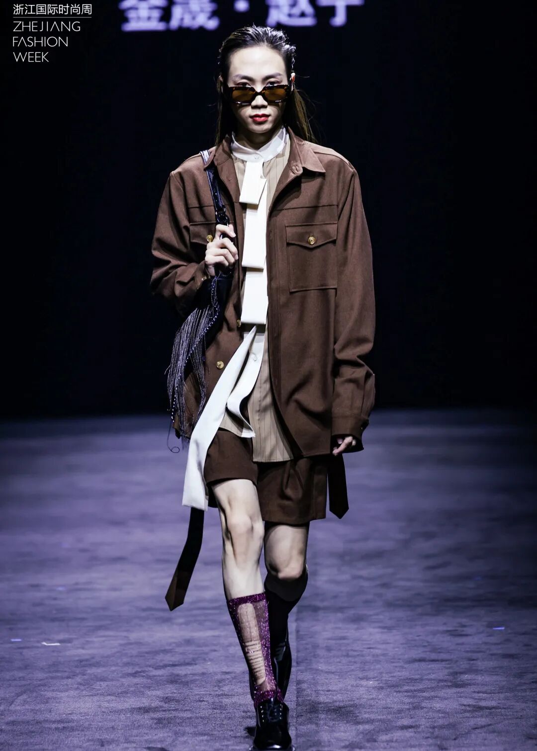 这场秀我其实想表达我们从年轻到过上自己想要的品质生活的过程,所以刚开始我们用了很强烈的撞色,用很年轻的元素去表达一个热烈的心情,到中后期,我们用了一些很重工的手法,去表达精致的生活理念。