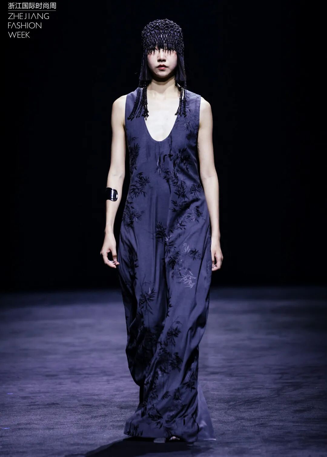 这次的主题是“竹集”,采用了我们自己特有的竹浆面料,在面料的原型基础上,我们进行了重加工的绣花和钉珠,还有我们自己原创的印花。我们想用原生态可持续的环保面料加上竹子元素的设计,体现出现代和灵空,代表环保理念的设计手法。