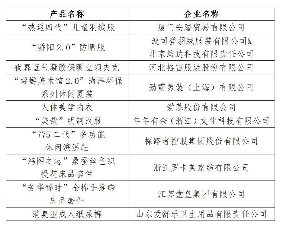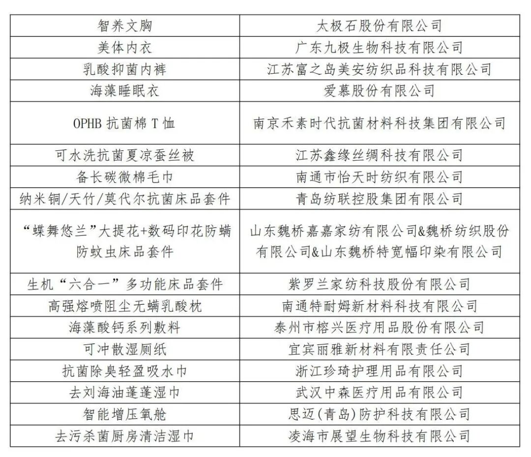 2023年度十大类纺织创新产品十大精品