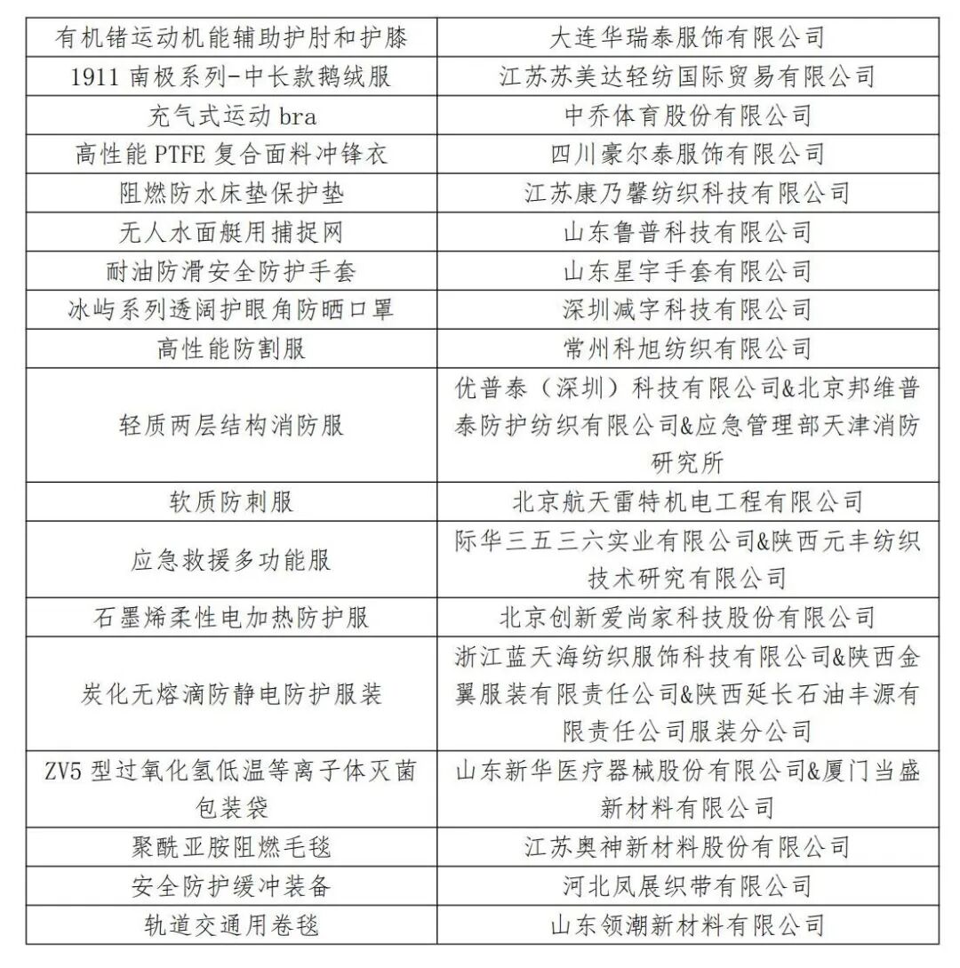 2023年度十大类纺织创新产品