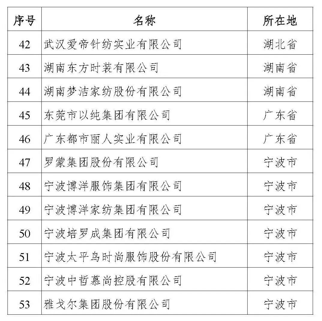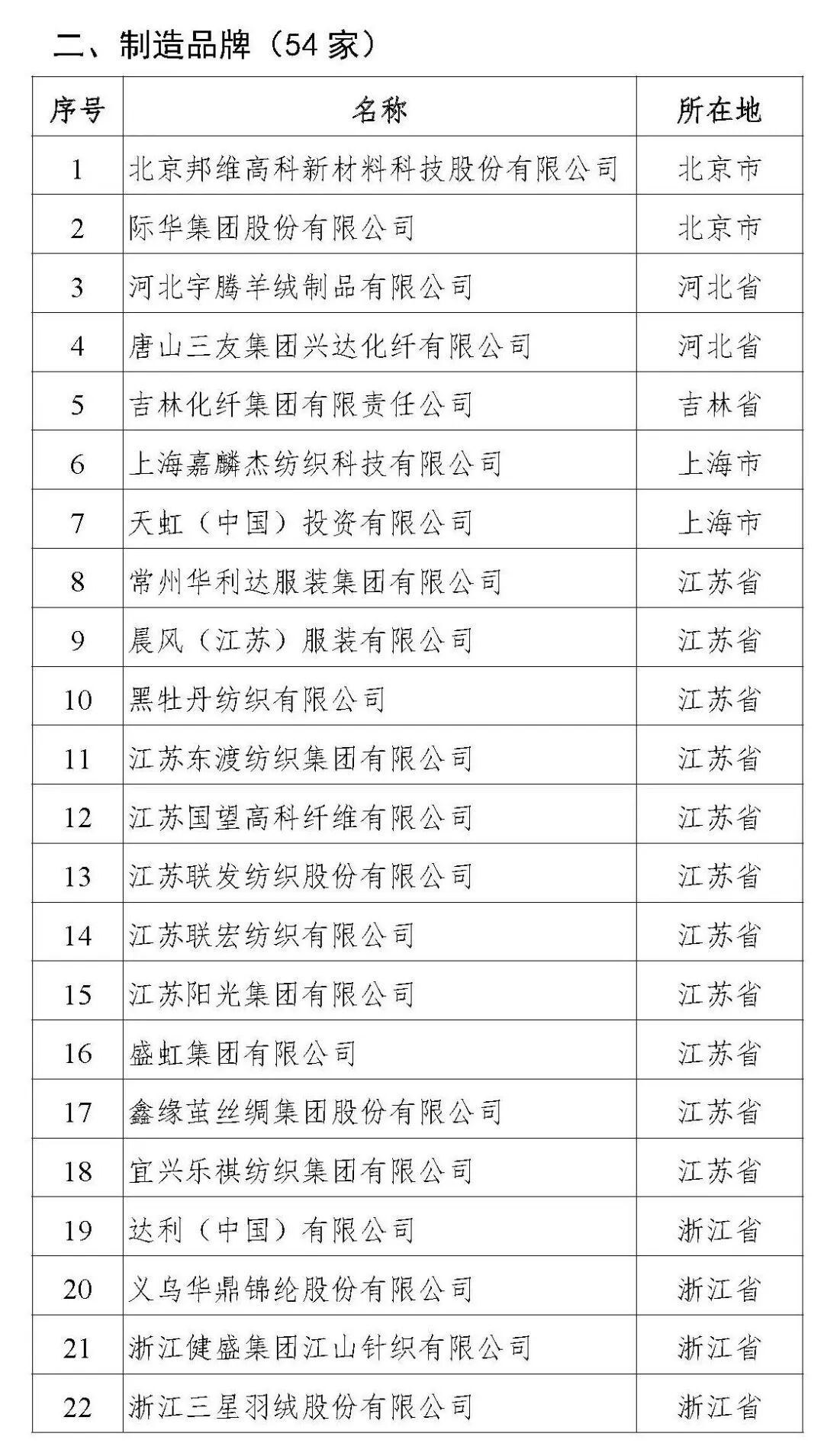 重点培育纺织服装百家品牌名单(2022版)的通知