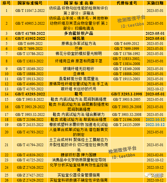 其中,请注意GB/T 21396-2022《鞋类 成鞋试验方法 帮底粘合强度》等标准是发布即实施的。