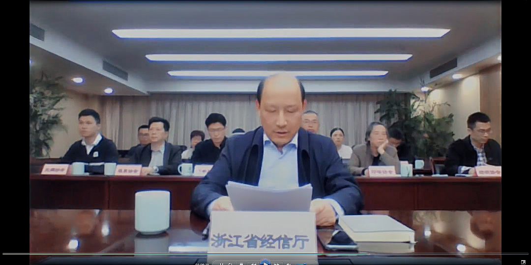 浙江省经济和信息化厅二级巡视员洪杰以视频连线形式进行了发言。他首先介绍了浙江省纺织服装行业总体运行情况,以及今年以来浙江省在全力推进企业数字化改造、全力推动企业提质增效、全力帮助企业降本稳链三方面工作中取得的成效。