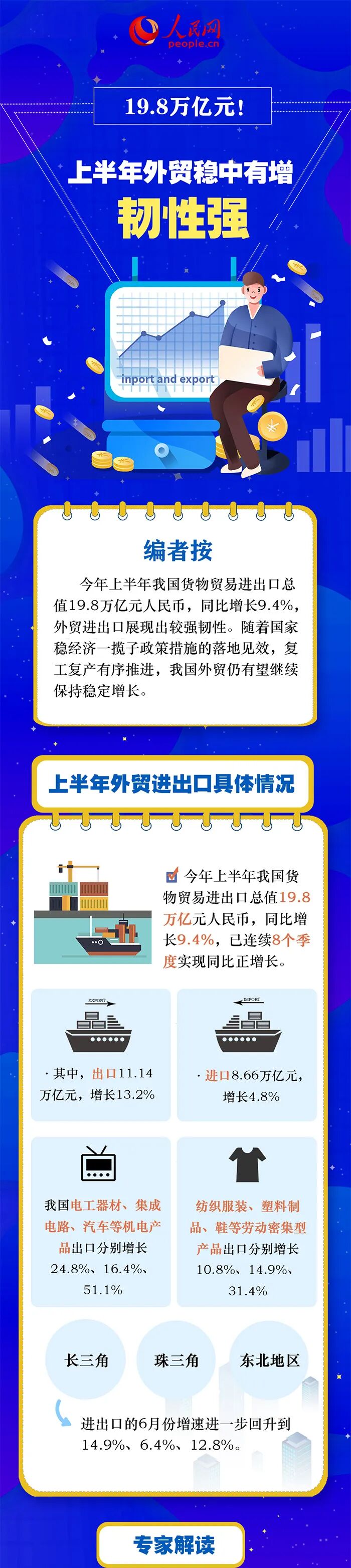 上半年我国外贸进出口展现出较强的韧性,一季度平稳开局,5、6月份迅速扭转了4...
