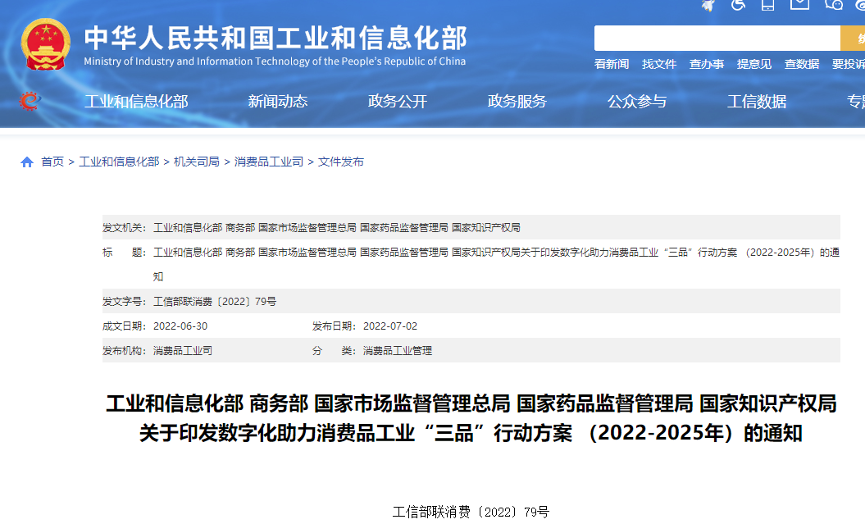 日前,工信部、商务部、市场监管总局、药监局、知识产权局等五部门联合发布了《数字化助力消费品工业“三品”行动方案(2022—2025年)》,提出到2025年,在纺织服装、家用电器、食品医药、消费电子等行业培育200家智能制造示范工厂,打造200家百亿规模知名品牌。更好满足和创造消费需求,增强消费拉动作用,促进消费品工业加快迈上中高端。