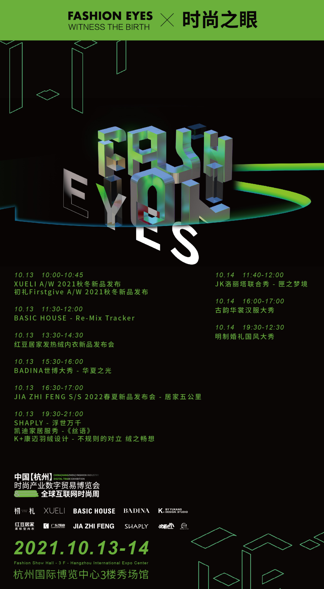 本次全球互联网时尚周(FASHION EYES SHOW)将大胆尝试全新玩法,利用环形屏幕及光影设备打造集颜值与功能为一体的沉浸式时尚空间。周长近百年的环形led、六边形显示立柱、中心圆形显示舞台共同构成了一个时尚数字元宇宙空间。时尚之眼专业秀场打造全封闭空间,带来全方位立体沉浸式体验。数百名模特集体亮相,国内顶尖模导团队、毛戈平化妆团队、舞美团队共同打造9场华丽大秀,礼服、女装、童装、家居、羽绒、汉服、JK、洛丽塔,不同风格,不断刷新时尚视界。
