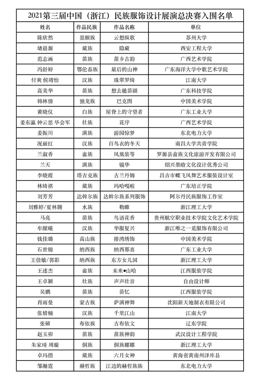 此次活动有桐庐县县委统战部副部长/县民宗局局长朱伟民、桐庐县莪山畲族乡党委书记李春龙、浙江省服装行业协会顾问韩礼成、浙江省服装行业协会秘书长沈茉莉、浙江省服装行业协会副会长/浙江文创集团董事长钱峰等领导嘉宾出席,特邀了上海东华大学教授、博导刘晓刚、中国美术学院教授钱麒儿、浙江科技学院艺术设计学院服装学院副院长俞晓群、浙江理工大学教授夏帆、中国服装设计最高奖项金顶奖设计师/上海顶标服饰设计总监武学凯、中国服装设计最高奖项金顶奖设计师/合集置和设计师艺术平台创始人张义超、中国十佳时装设计师张伶俐7位知名服装设计大师及民族文化研究专家教授组成初复评评审团,围绕民族文化的展现、创意与主题、造型与结构、色彩与面料等方面进行综合评分,抉择出30位设计师进入最终的总决赛。参与总决赛的30名设计师将在一个月左右的时间内完成成衣制作,评审团通过展演晚会上模特对服装作品的动态展示来进行综合评分,最终评选出十佳设计师、优秀设计师等多个奖项。