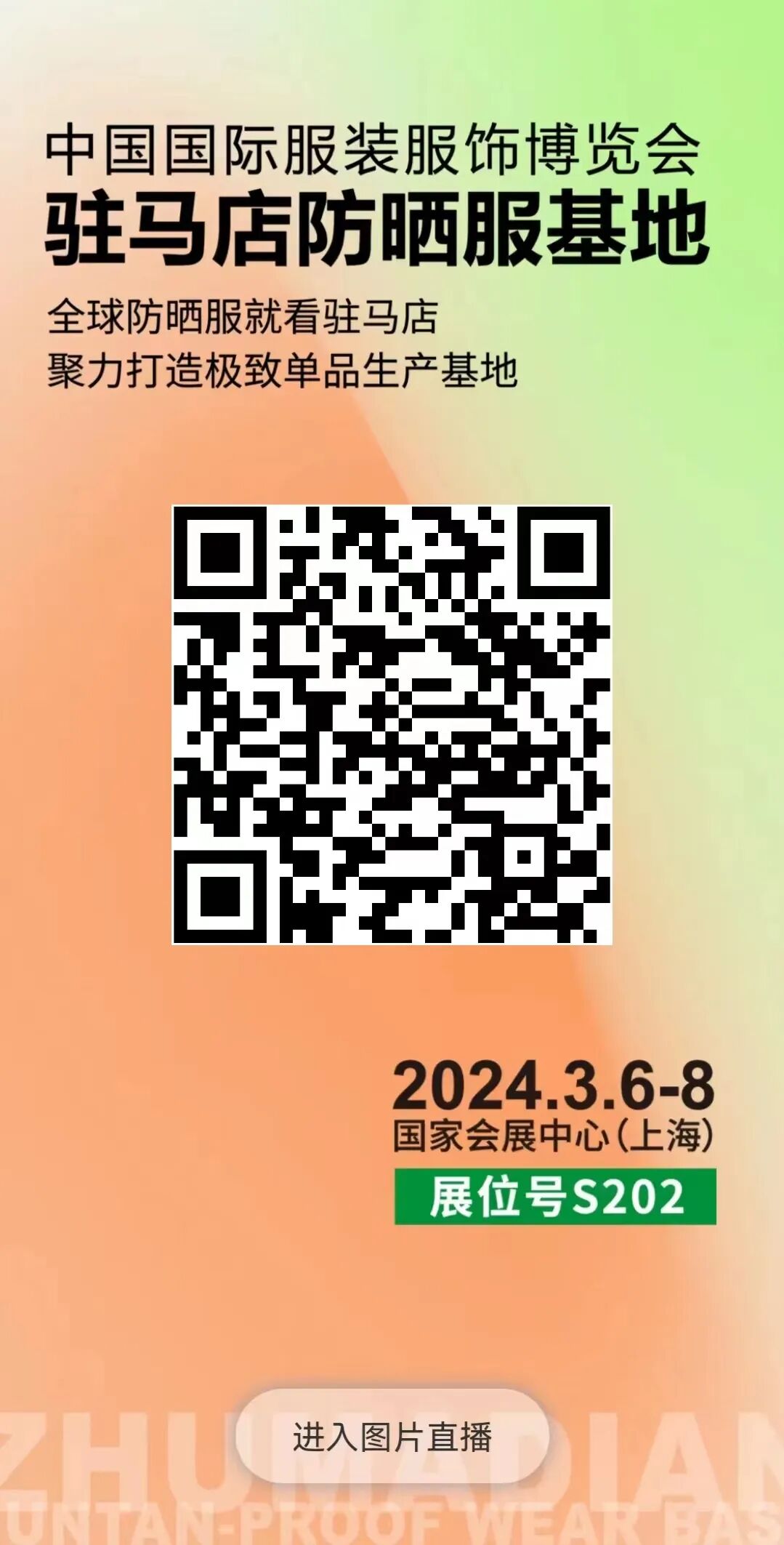 3月6日,2024中国国际服装服饰博览会(CHIC)在上海盛大开幕。现场,河南省服装行业协会与驻马店市政府、上蔡县、西平县政府携手,联合200余家驻马店防晒服基地共建单位共同亮相CHIC。