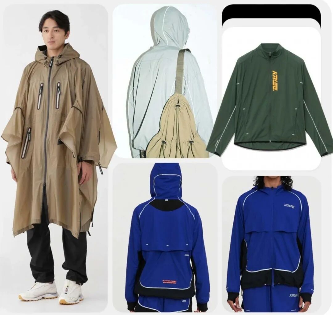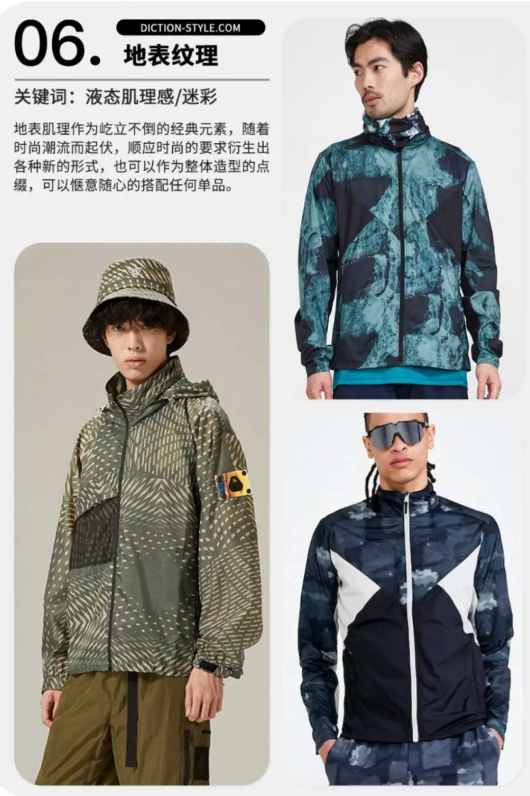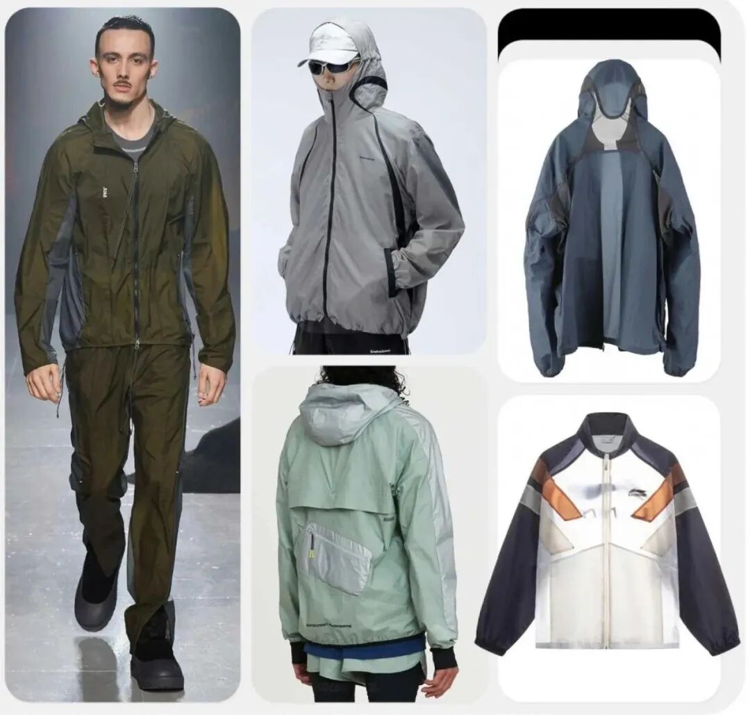 色块分割充分发挥分割线在服装结构与装饰中的作用,实现了裁片间色彩与材质的组合与对比,打破了传统的思维限制。不同形式的撞色拼接防晒衣,分割出明了的视觉快感。