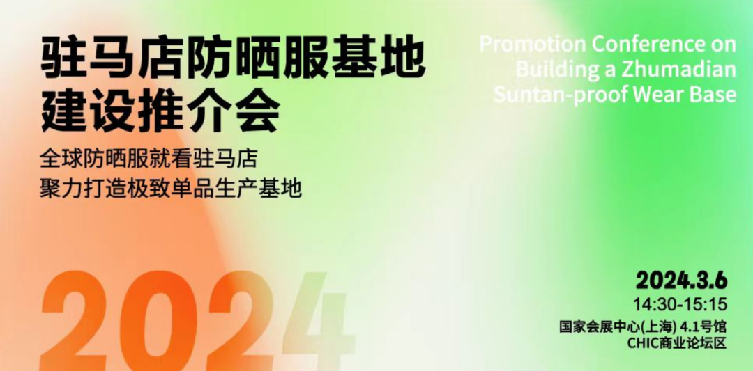2024年3月6日至8日,河南省服装行业协会将与驻马店市、上蔡县、西平县人民政府合作,携手200余家驻马店防晒服基地共建单位共同亮相CHIC(春)。