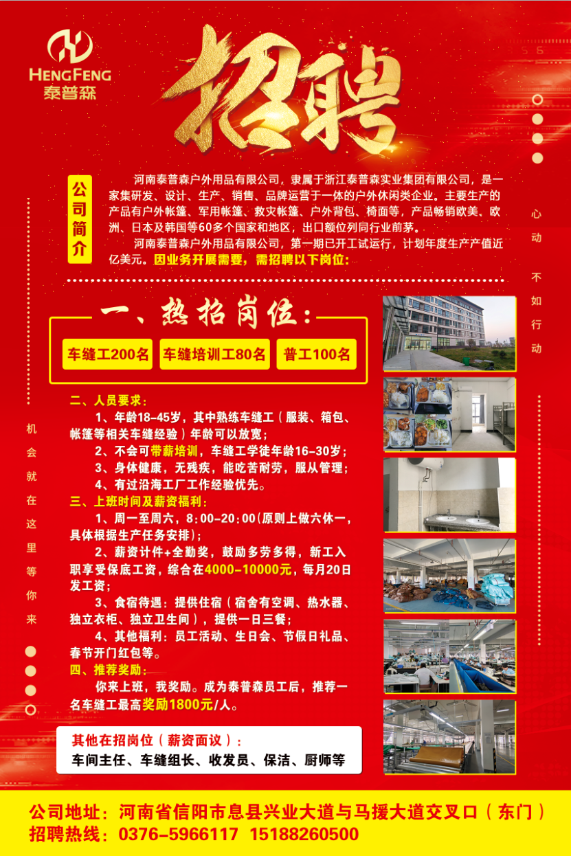 河南泰普森户外用品有限公司招聘开始了!