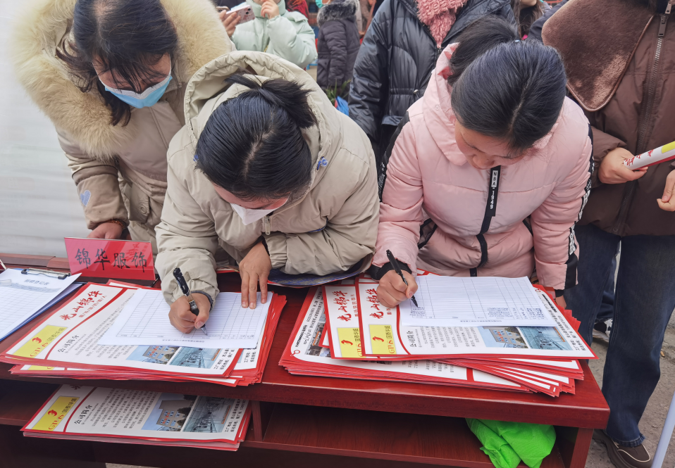 招聘现场,展台前围满了前来咨询的求职群众,“我就是附近村里的,听说今天镇上有招聘会,一早我就跑来了!”求职者王晓燕说,之前,为了照顾孩子,自己很久没有上班,去年秋天孩子考上了理想的大学,自己给自己放了半年的假。现在春节已过,来招聘会逛逛,看能否找一份合适的工作,方便尽快就业。