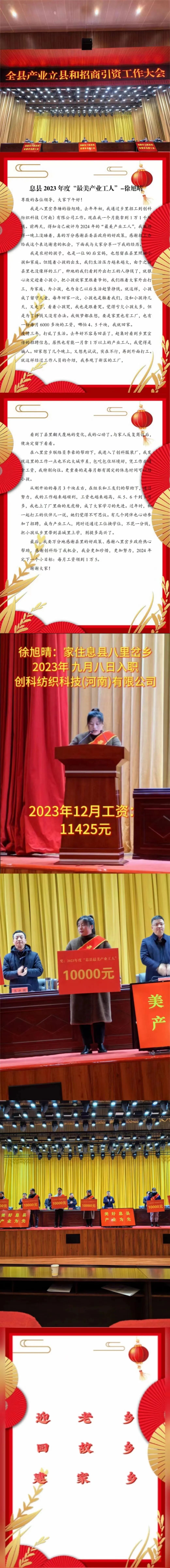美好息县产业为先2023年度息县最美产业工人息县创科纺织科技(河南)有限公司员工...