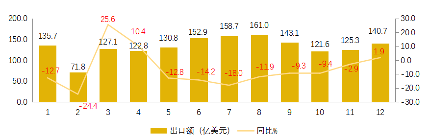 / 贸易预警 | 2023年1-12月我国服装出口分析