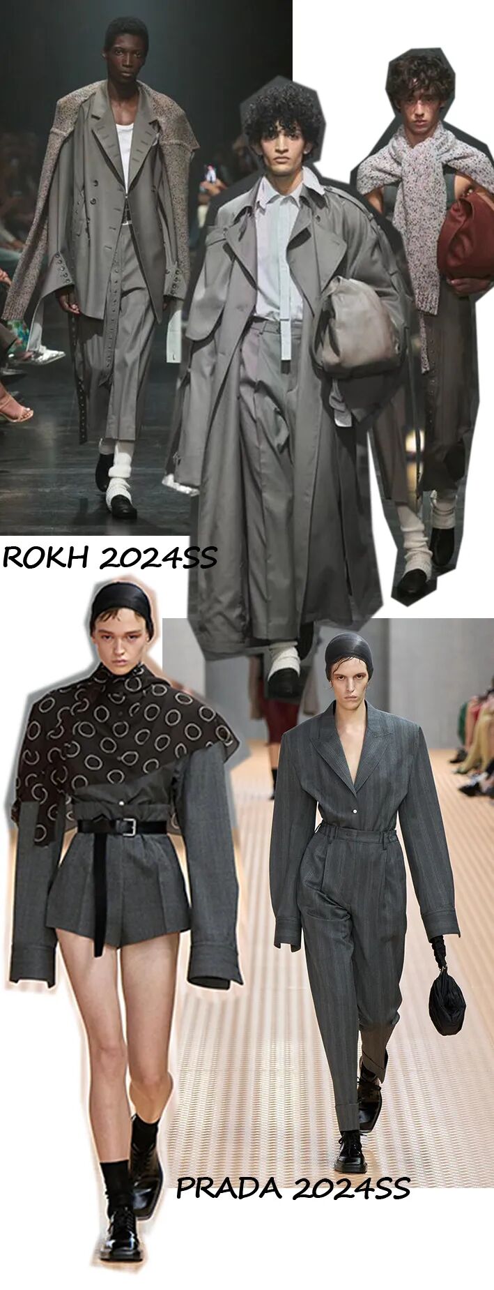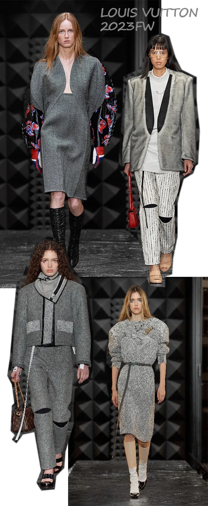 无疑,灰色承载了黑与白的精华,同时散发着一种温和的光泽。深灰显得沉稳典雅,而浅灰则呈现轻盈清新之感。作为调和色,灰色自然在时尚潮流中可以崭露头角,成为表达时尚品味和独特风格的理想选择。在今年各大时尚品牌的秀场穿搭中,便能看出全灰色系会在今年冬季和2024年来春成为流行趋势得端倪。
