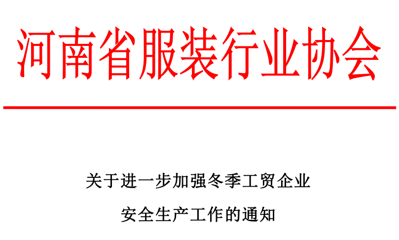 冬季干燥,叠加寒潮天气影响,安全生产事故、交通事故等易发多发,各服装企业及相关单位要高度警惕,绷紧安全生产管理弦,抓细抓实防范火灾、冻灾、有害气体中毒等重点安全生产工作,强化组织保障,坚决杜绝事故发生。