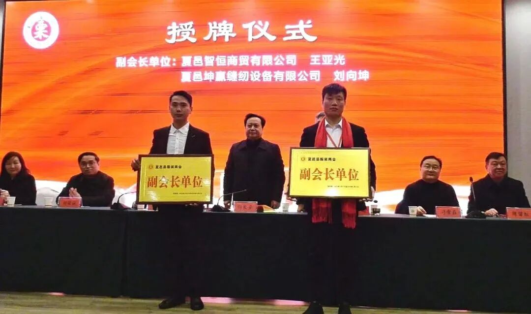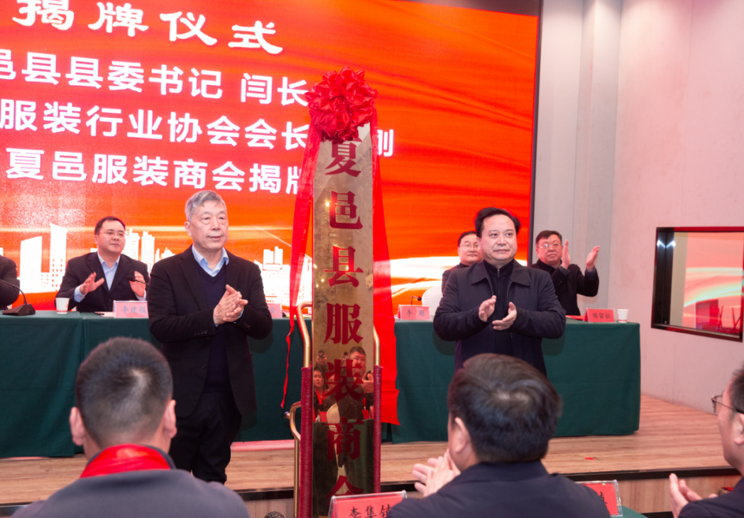 会上,李刚、闫长安共同为夏邑县服装商会成立揭牌,为新当选的会长、副会长、秘书长企业授牌。