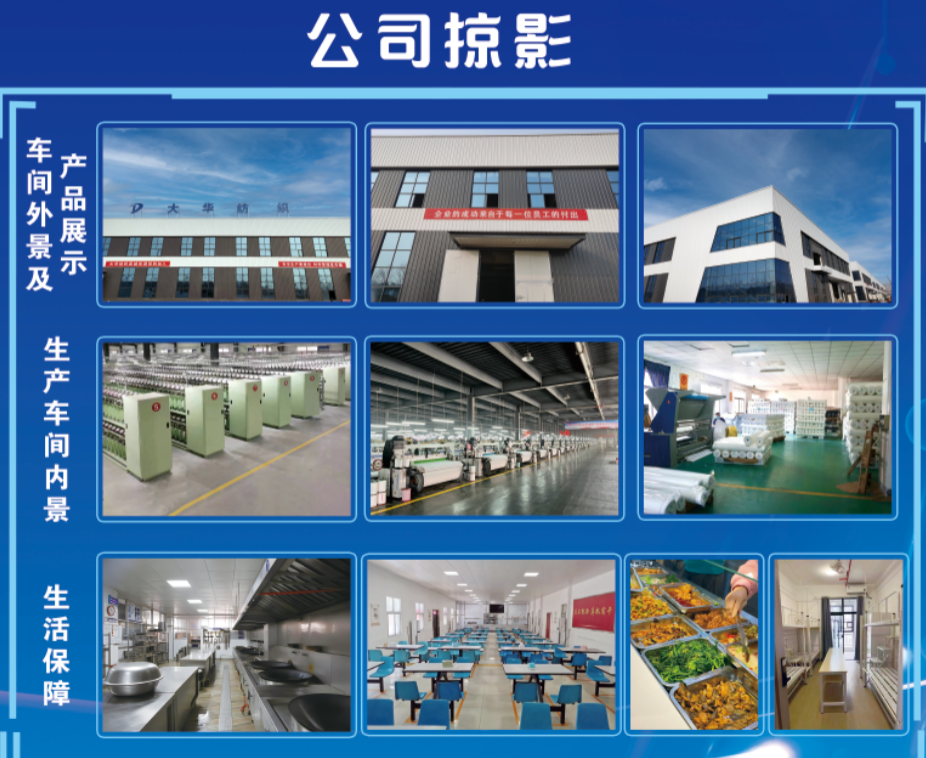 现公司面向社会,招募各界优秀人士,融入大华纺织这个大家庭中来,期待与您们的相会。公司免费提供住宿,三餐免费就餐;节日发放福利待遇,设有全勤奖;工资每月15日准时发放,员工稳定后享有社保五险;厂区内装有电动车可充电装置。