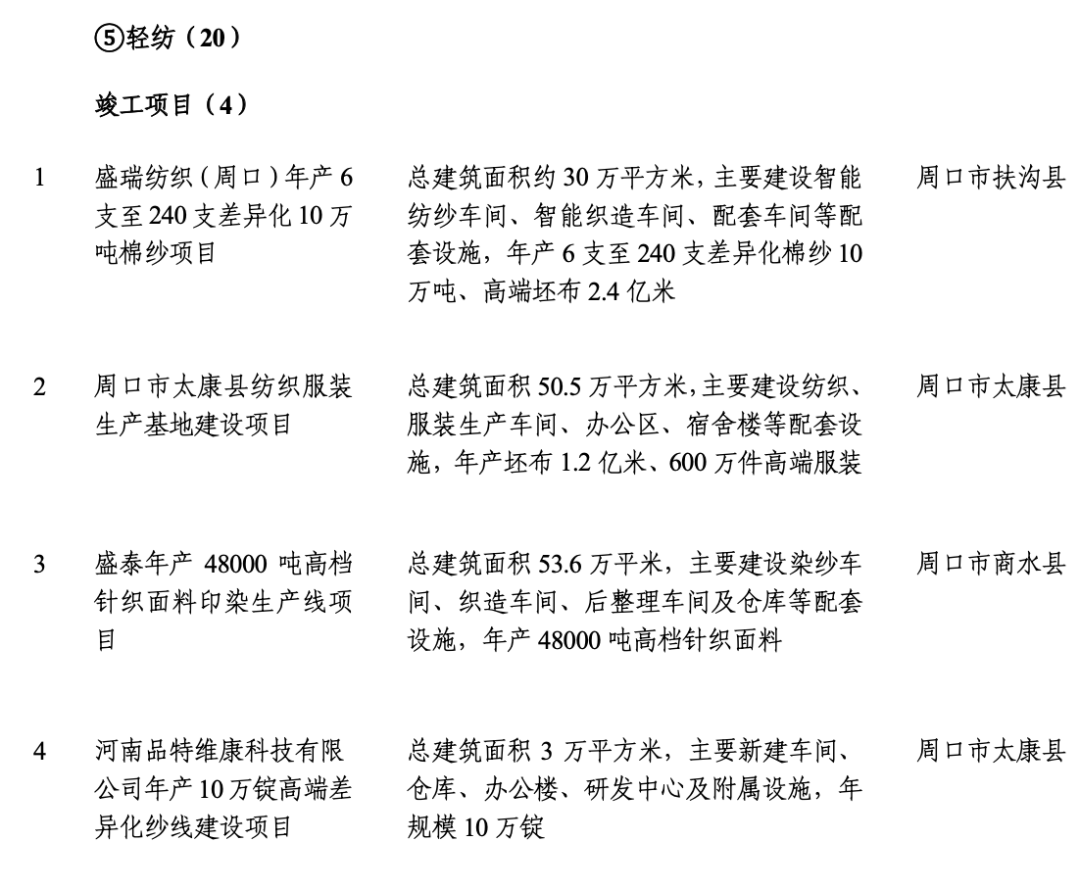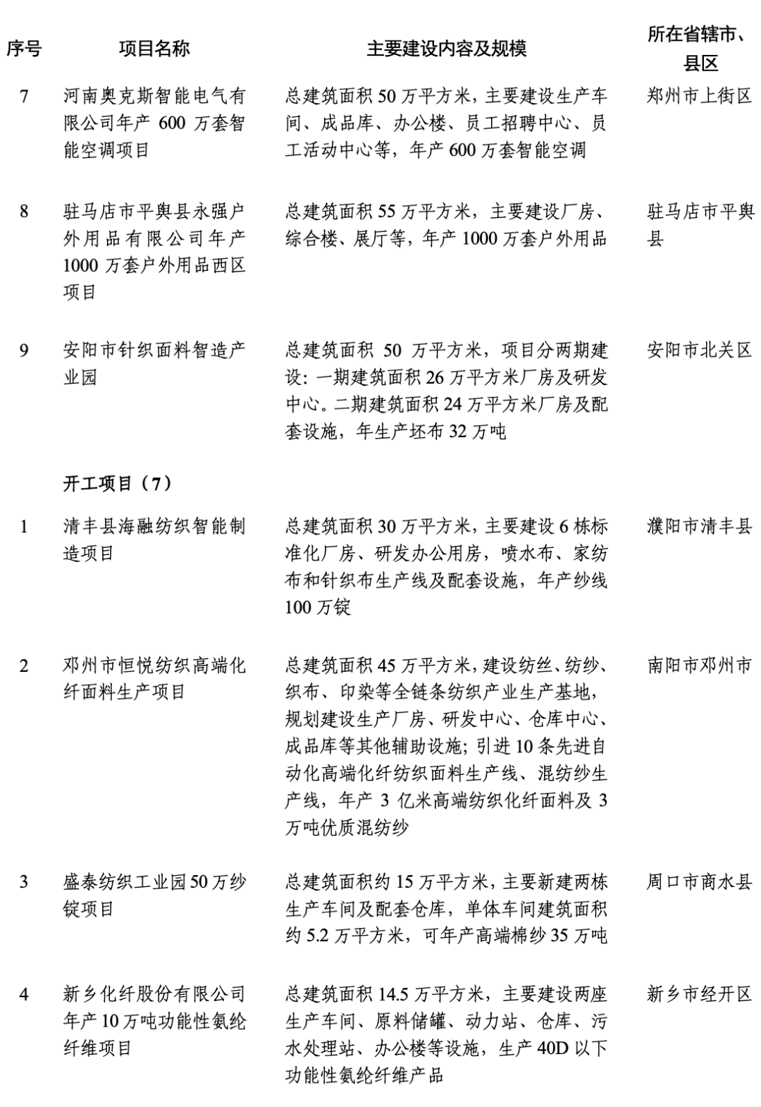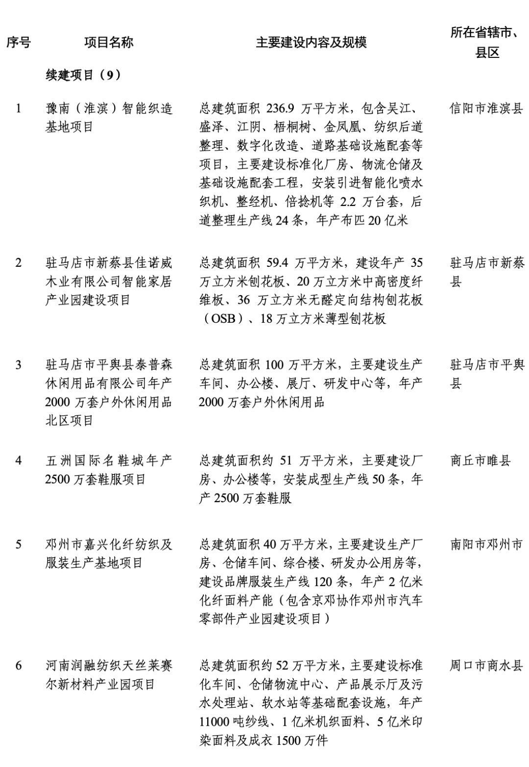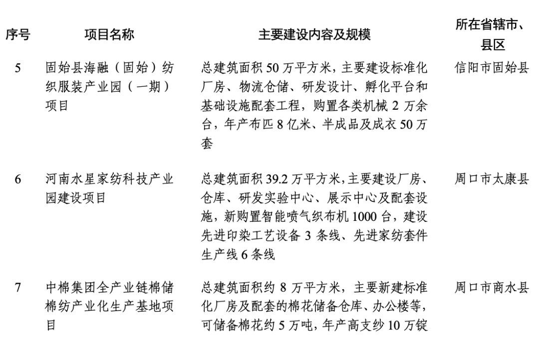 近日,河南省发展和改革委员会公布了2024年第一批重点建设项目名单,入选项目共计520个,总投资约2.1万亿元,年度计划投资约5830亿元,涵盖创新驱动能力提升、基础设施建设、新型基础设施建设、产业转型发展、绿色低碳转型、民生社会事业改善等六大领域,其中这些轻纺项目入选重点项目名单!