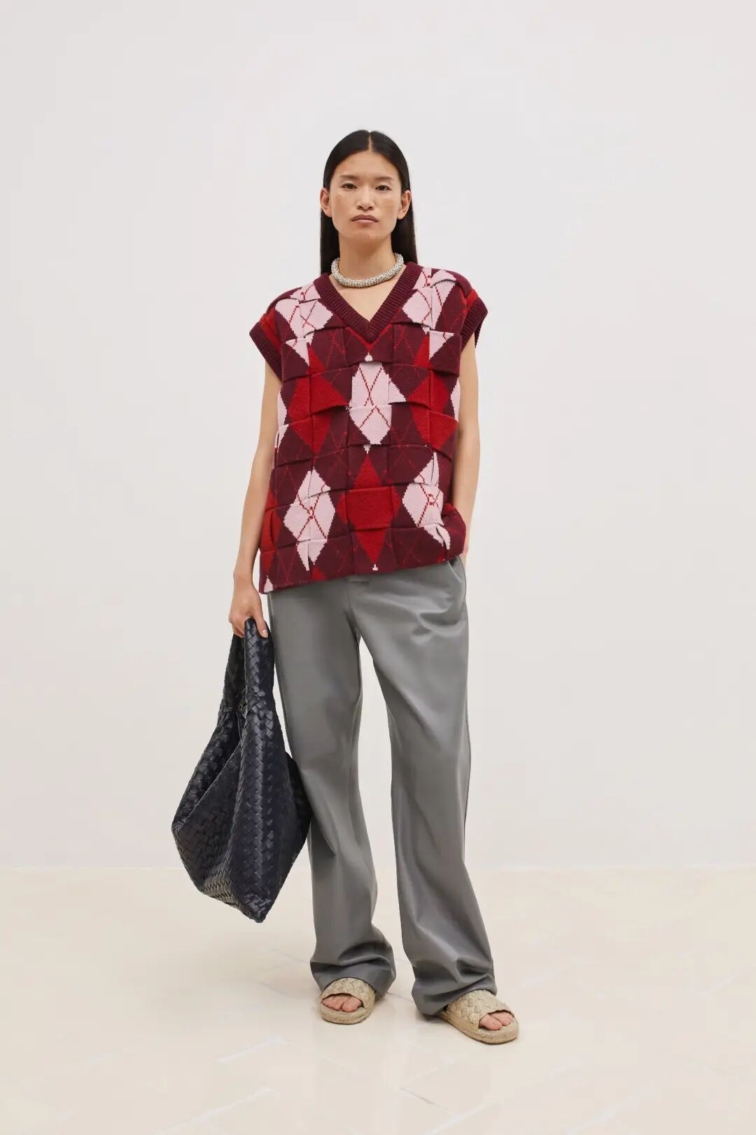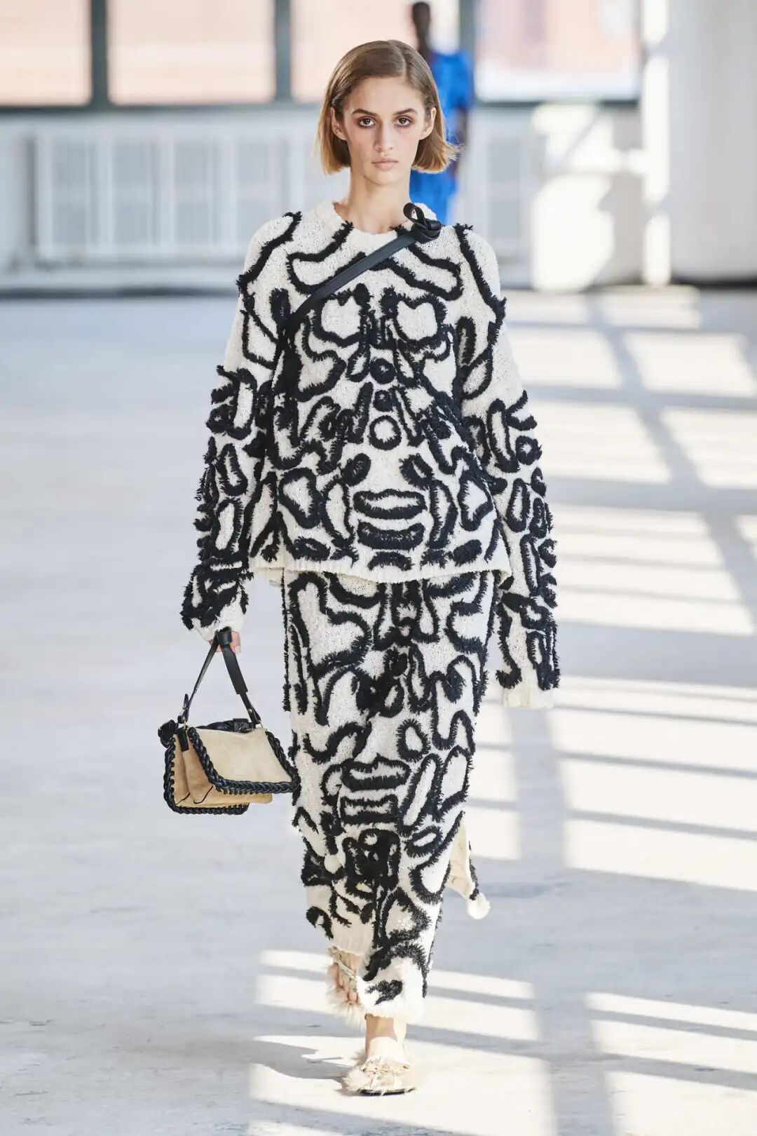 线面主题图案是指点,线,面根据一定的要求组织起来的无规则图案,其图案大大丰富了针织服装设计的美学概念,以其秩序,几何感,简洁化等方式的视觉展现眼前。