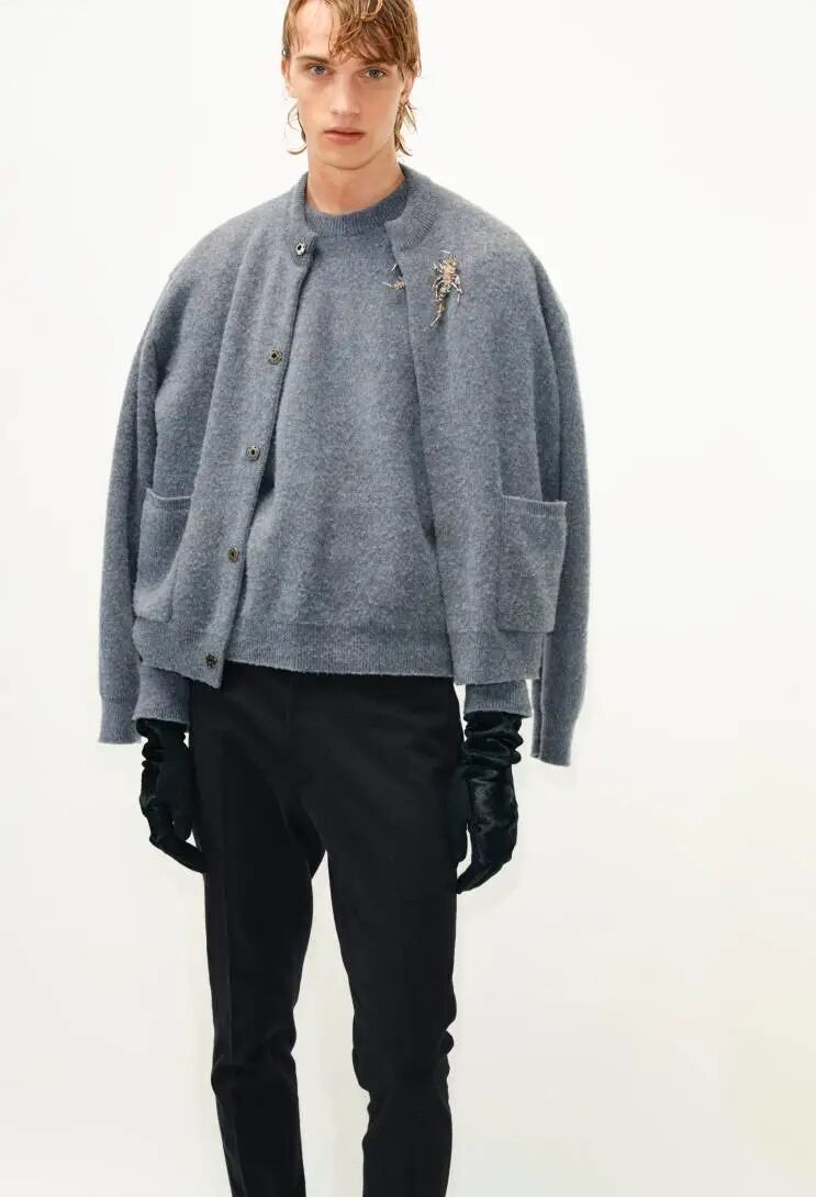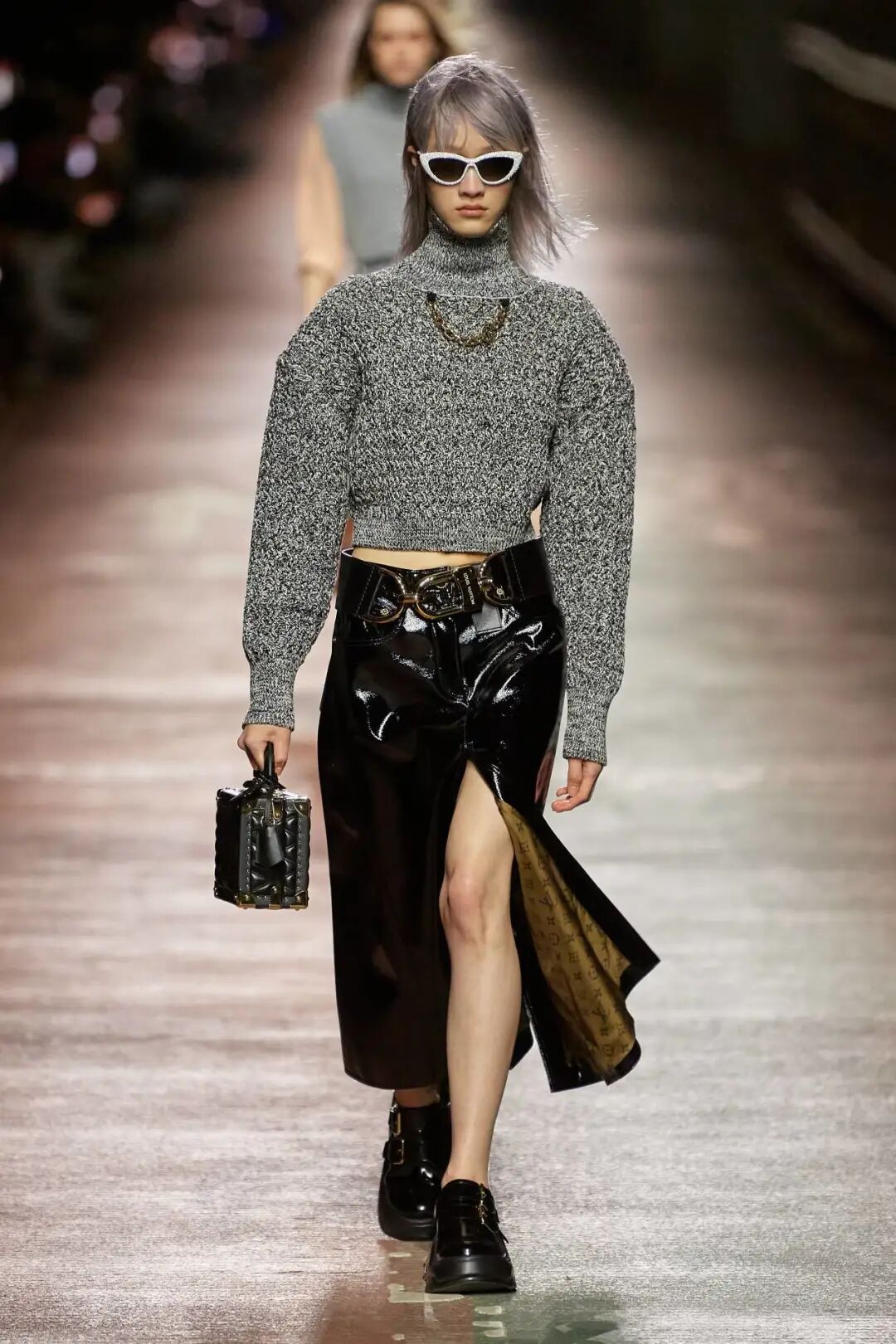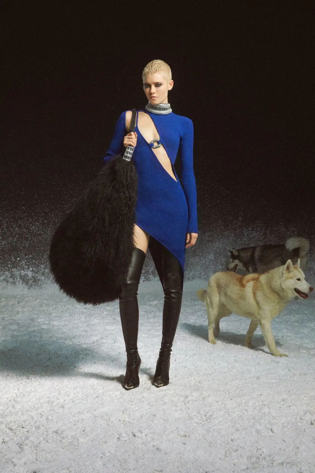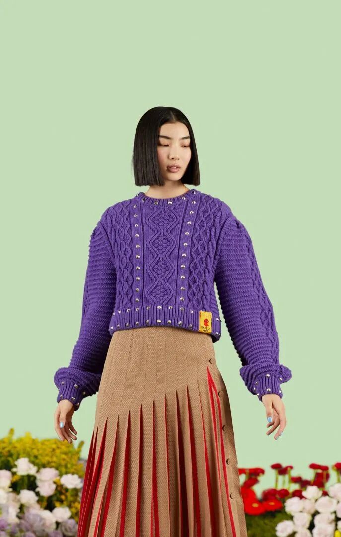 针织服装常给人一种柔和温暖的感受,而金属在触感上则是坚硬冰冷的。当冷与暖、坚与柔...