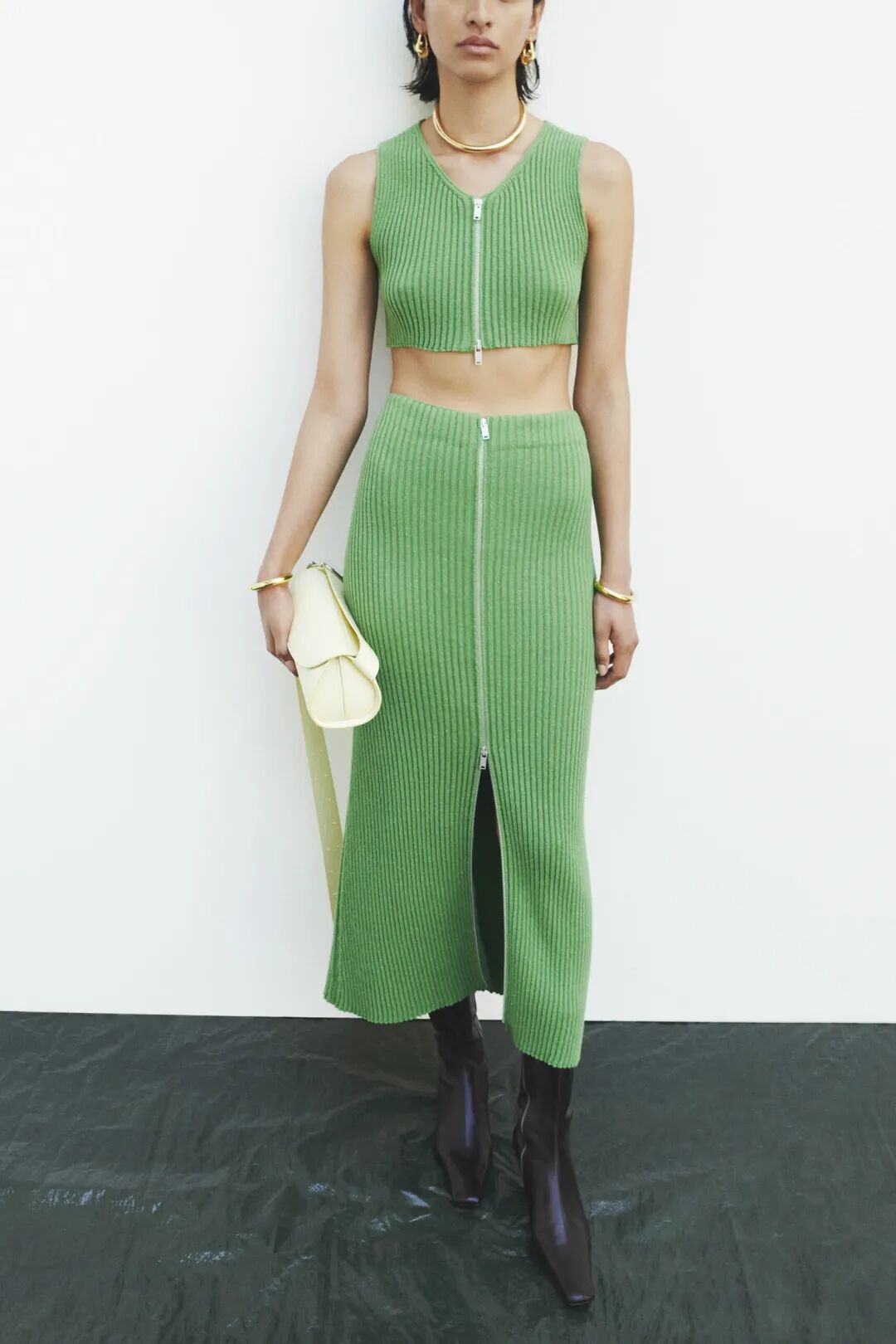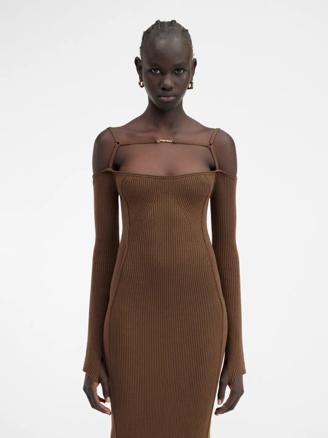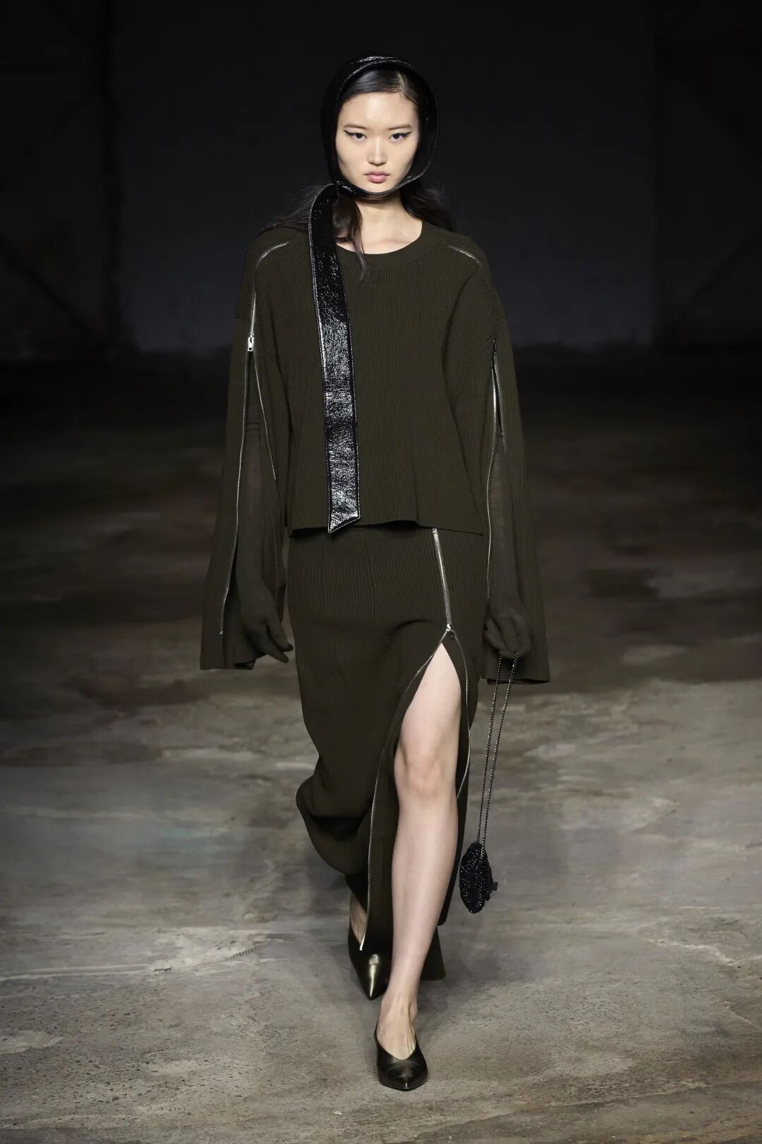针织服装常给人一种柔和温暖的感受,而金属在触感上则是坚硬冰冷的。当冷与暖、坚与柔...