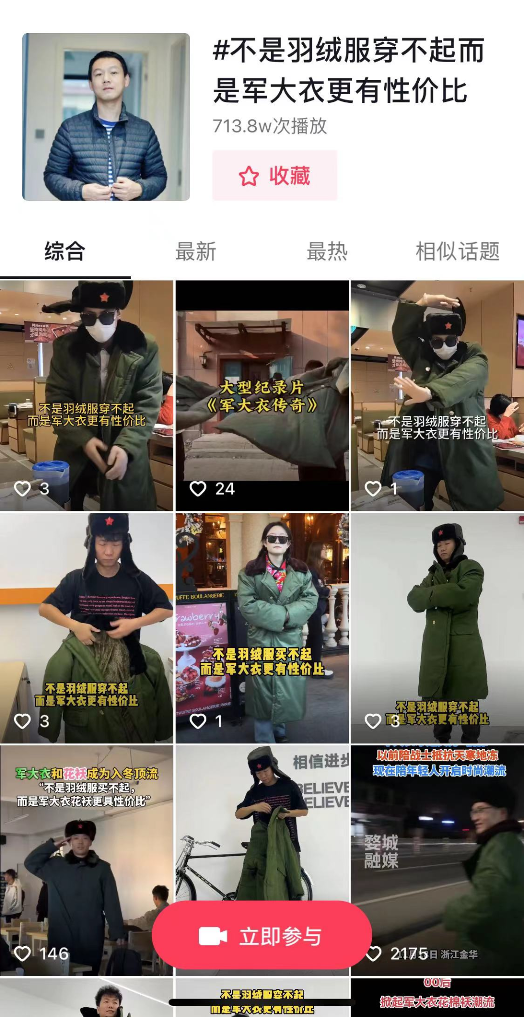 近期,一群大学生穿着军大衣上课的视频在网络上走红。这一新奇现象引来了数百万网友的围观,掀起了一股男大学生穿军大衣,女大学生穿花棉袄之风。网友辣评:一个人穿叫显眼包,两个人穿难以接受,三个人穿略显尴尬,一群人穿叫引领潮流。八十年代,军大衣从军营火到了大众日常消费,是那个时代名副其实的爆款。而现在,男生们穿军大衣,女生们穿花棉袄再次成为了一种潮流趋势,冬天不再仅仅是精致考究的羽绒服“一家独秀”。大学生们纷纷感叹:“不是羽绒服买不起,而是军大衣、花棉袄更有性价比。”据抖音平台话题统计,#军大衣、#不是羽绒服穿不起而是军大衣更有性价比等话题已经累计7亿+的播放量,而军大衣设计的棉服近期在京东也迎来热销,据数据统计,京东11.11期间,军大衣设计的棉服成交额同比增长181%。在这次军大衣的走红中,年轻人并没有因为这种穿搭的“丑”而去嘲笑和讽刺他人。相反,人们纷纷抱着自嘲的心态加入了这股“土气”的风潮。一边自嘲“土到掉渣”的同时,一边说着“军大衣真香”,这背后反映的,是现在大学生群体对“高性价比”的追求,是年轻人对资本营销PUA的抗拒。一直以来,代表资本的企业往往通过打造“时尚”、引领大众追求“时尚”,来达到销售商品的目的。这种情况下,一件同样的衣服,常常因为打上了品牌的标签就价格翻倍。而当下的“军大衣热”则反映了Z世代反其道而行之的态度,他们通过追求高性价比的军大衣,试图打破人们对所谓“时尚”的刻板观念。
